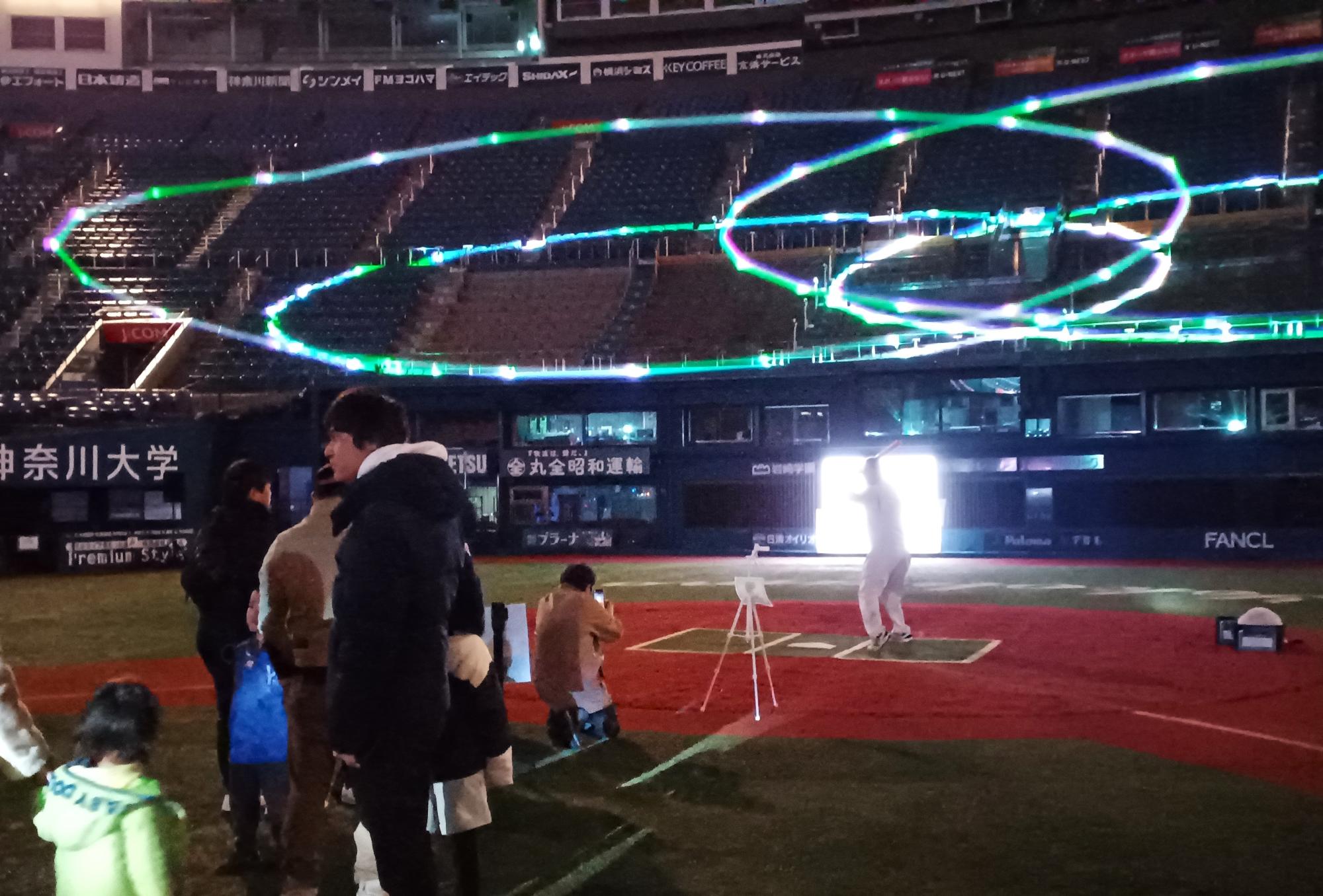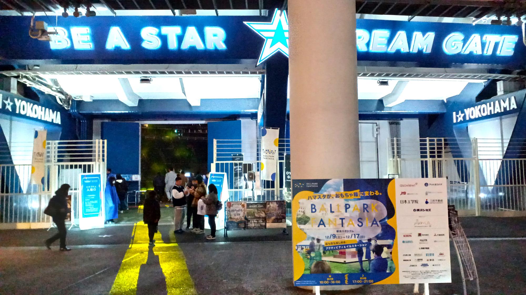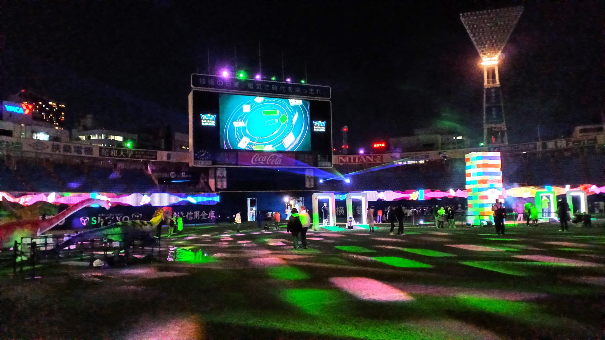 横浜スタジアム(横浜市中区)では、12月9日(土)から12月17日(日)まで「BALLPARK FANTASIA(ボールパークファンタジア)」が開催されている。平日(10:00~16:00、17:00~21:00)と、土日の昼の部(10:00~16:00)はグラウンドへの入場が無料!ライトアップと音楽が楽しい、夜の部を覗いてきた。