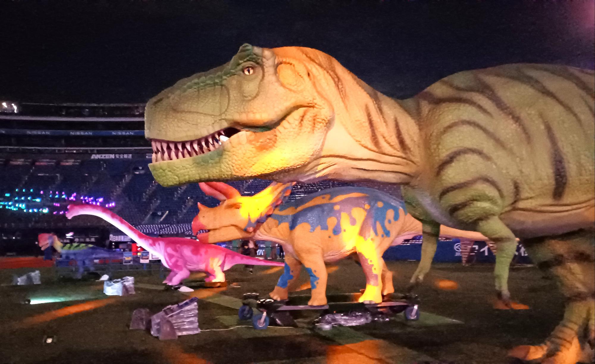 グラウンドには動く恐竜が!なかなかの迫力だ。