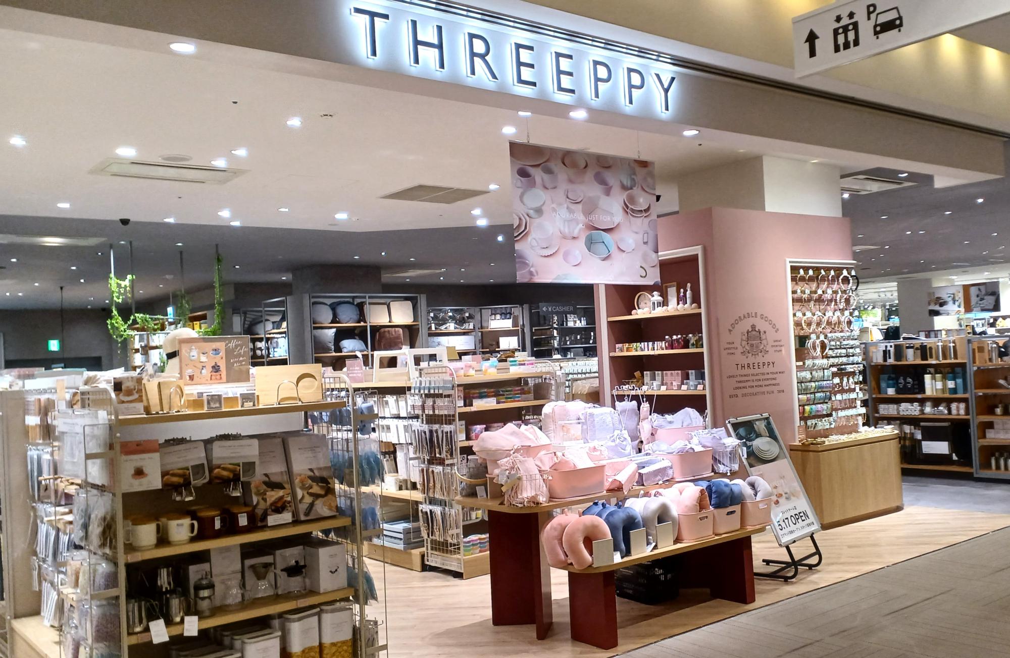 「THREEPPY」には、パステルカラーなど明るい色づかいの雑貨が並ぶ。