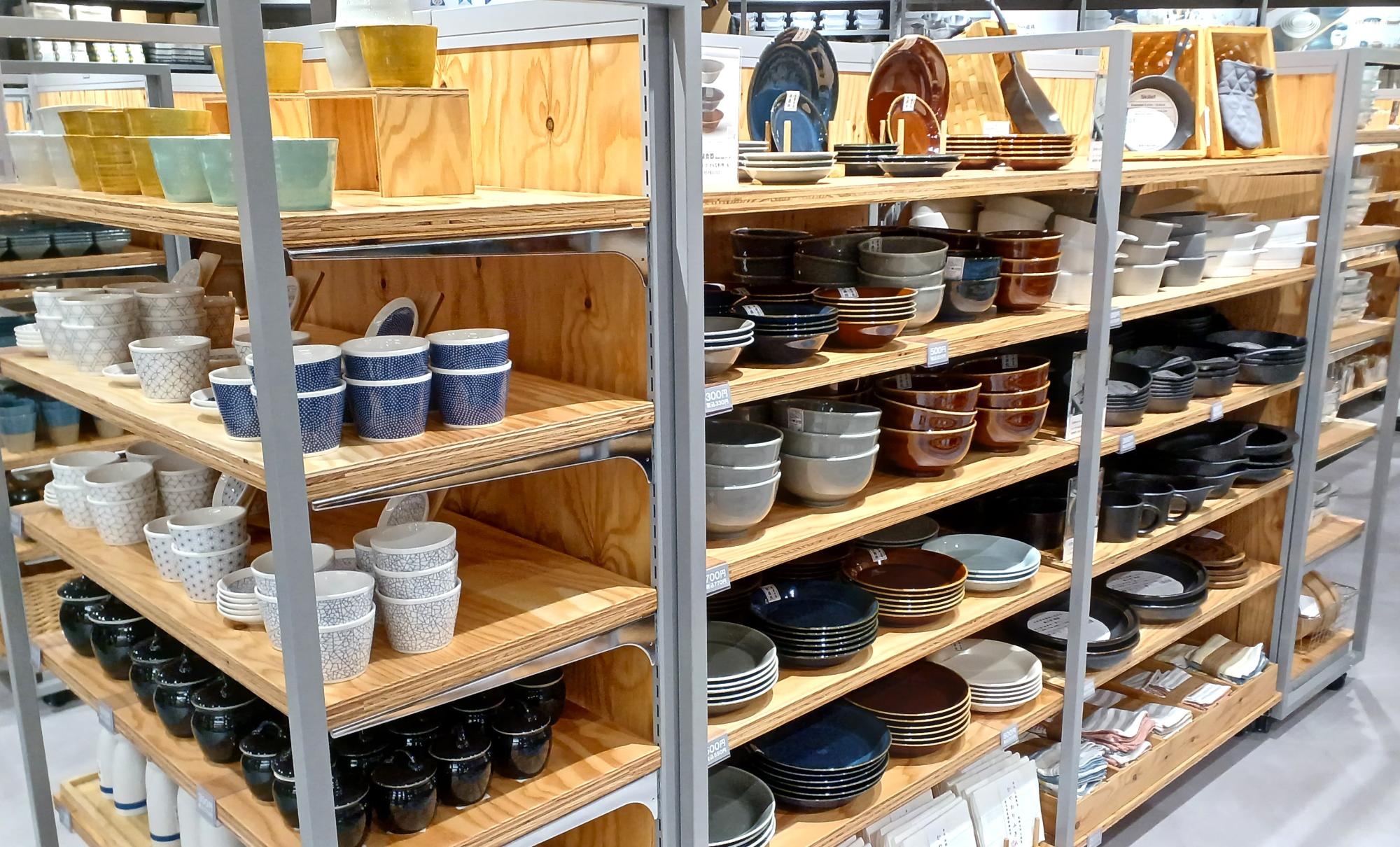 生活の中で「これあったら素敵だな」と思うものが、手を伸ばしやすい価格で売られている。タオルなどの生活必需品も「家にあるけど、変えてみようか」と思わせてしまう。100円ショップにあるような、掃除用品などの消耗品も取り扱いがあり便利だ。