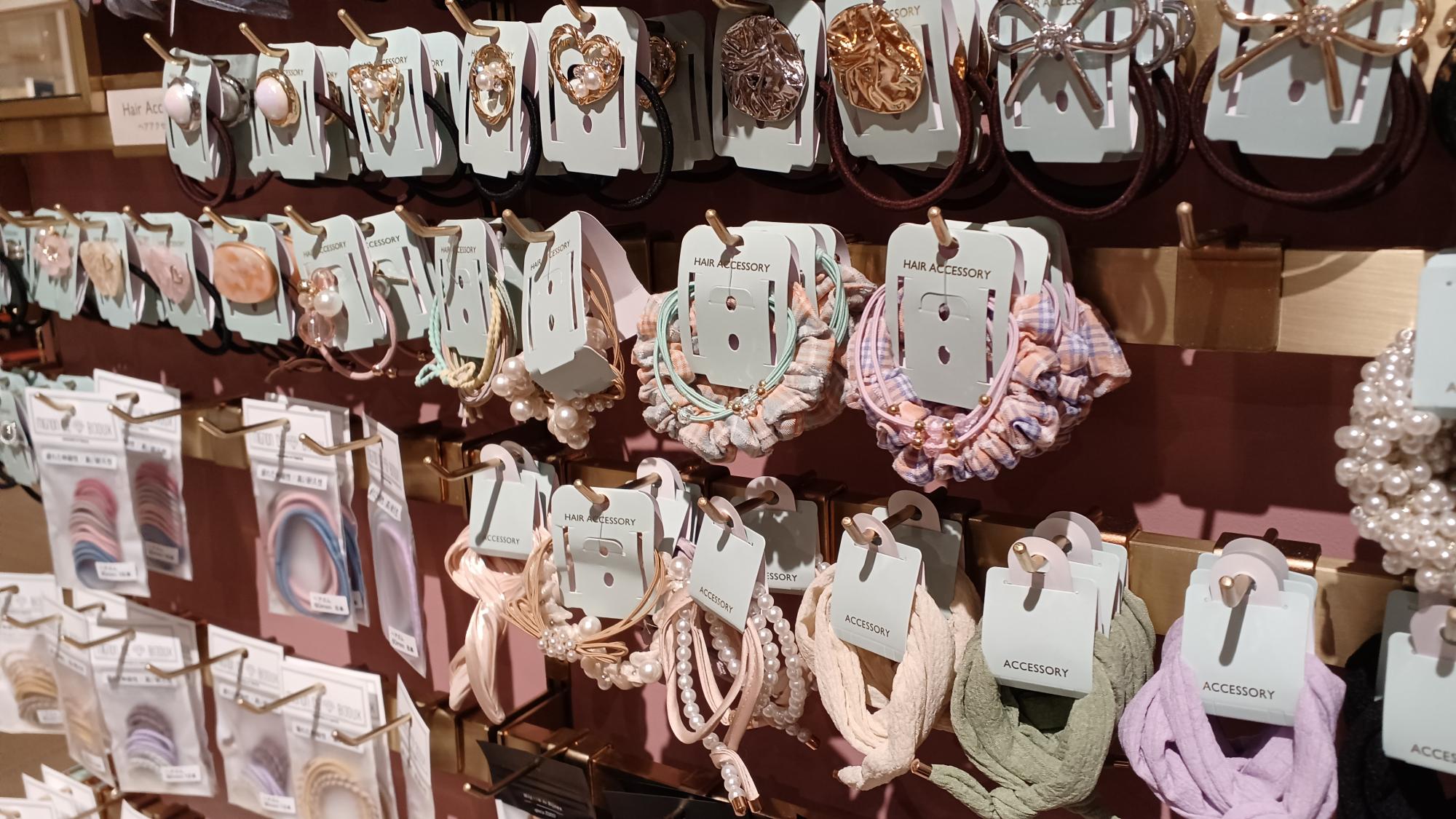 ピアスやヘアアクセサリーも「プチプラ」で手に入る。