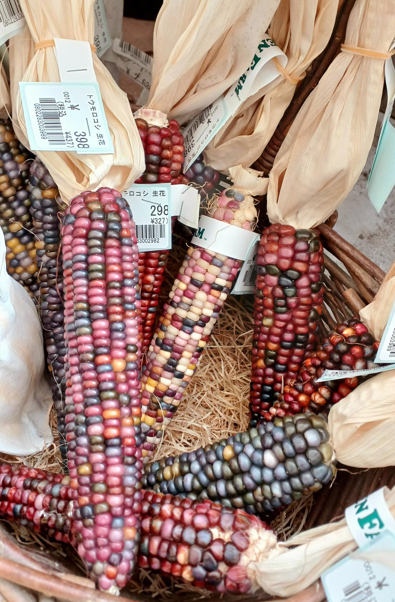 カラフルなトウモロコシも風物詩。装飾用なので、残念ながら食べることはできない。