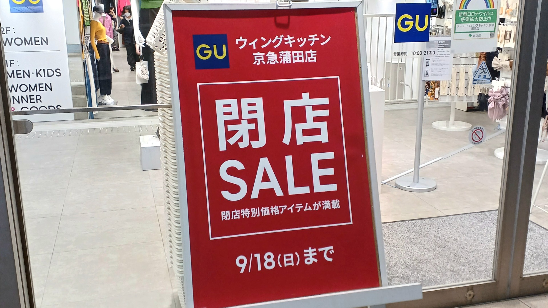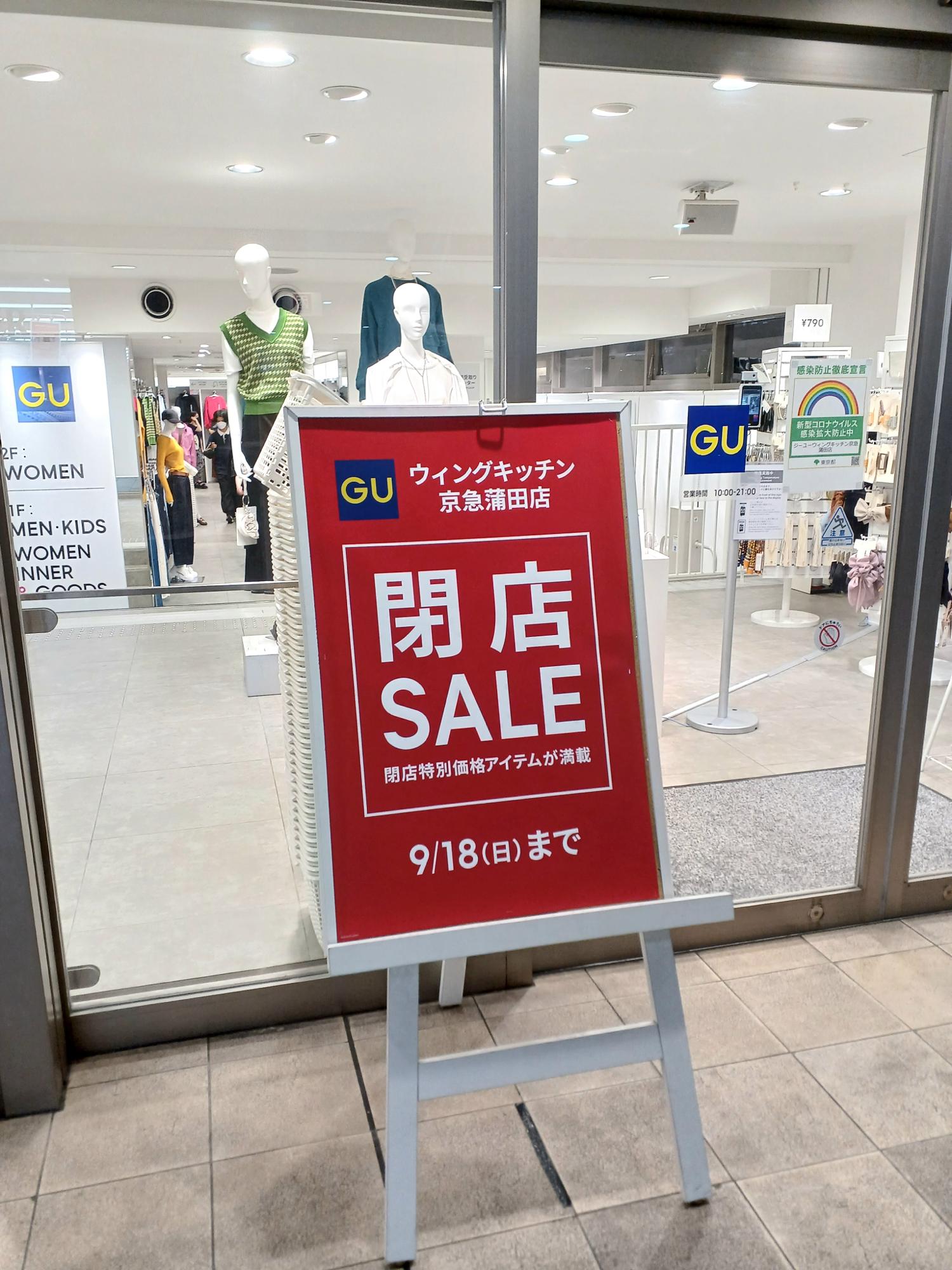 京急蒲田駅を出てすぐ、京急構内「ウィングキッチン」にあるGUは、2022/9/18までの営業で閉店。現在「閉店特別価格」でのセールも行われています。