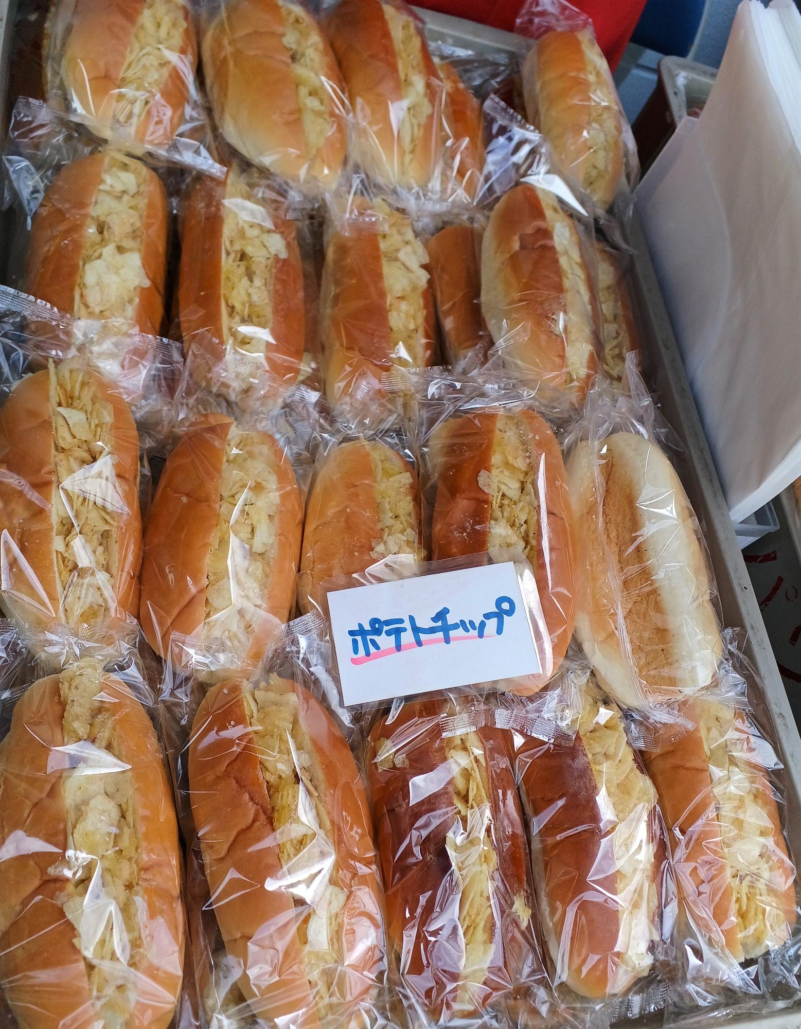 名物は、その名も「ポテチパン」!パンの間にポテトチップスがぎっしりと挟んである。ほかハムカツ、コロッケ、ヤキソバパンなども販売していました。