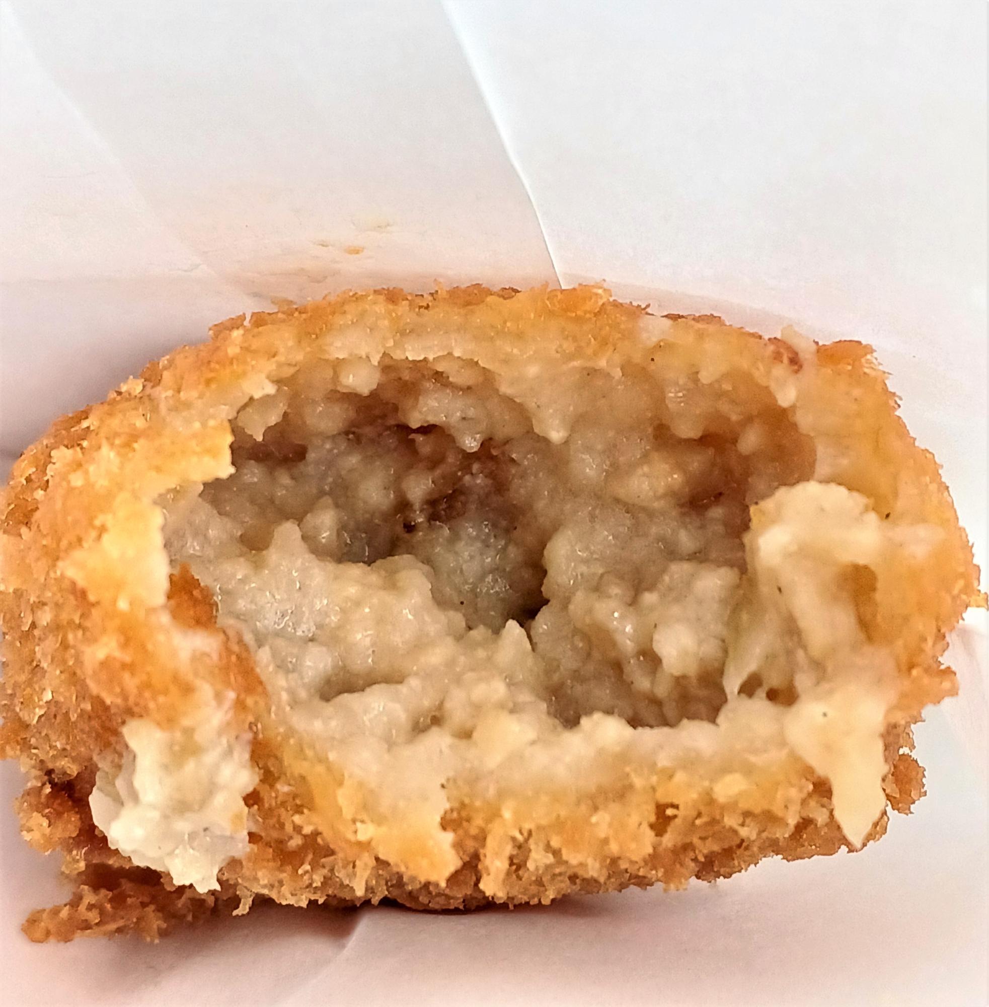 中身はトロトロで、甘めの惣菜の味付け。ザクザクの衣とトロトロの中身のコントラストを楽しむ。通学路にあったら毎日買ってしまう!日曜定休。