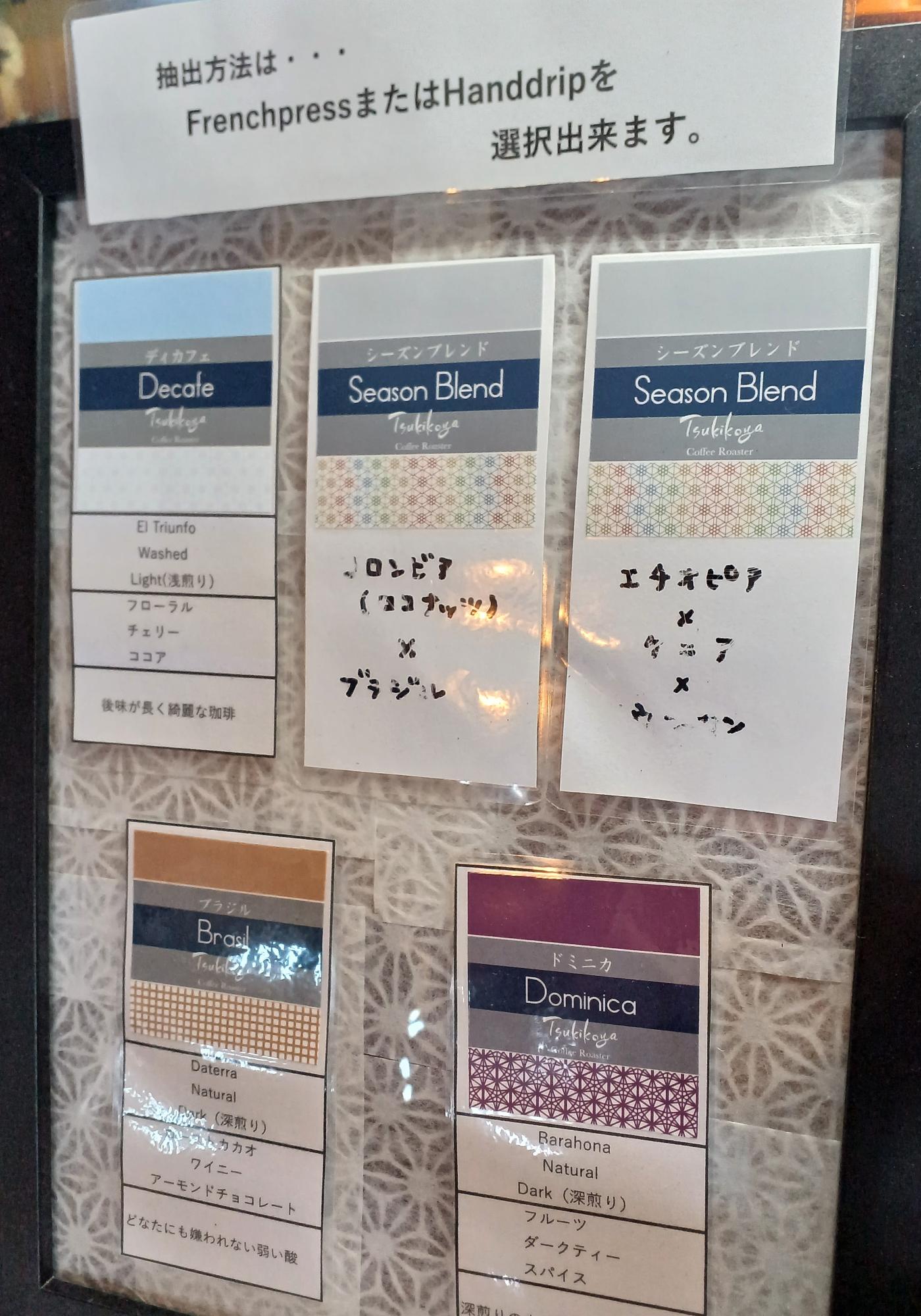 この日のコーヒーのラインナップはデカフェ、シーズンブレンド2種、ブラジル、ドミニカ。シーズンブレンドのコロンビアは、発酵過程でココナッツを加えてフレーバーが作り出された「インフューズド」豆。華やかなココナッツの香りと、コーヒーの酸味が特徴の浅煎りです。