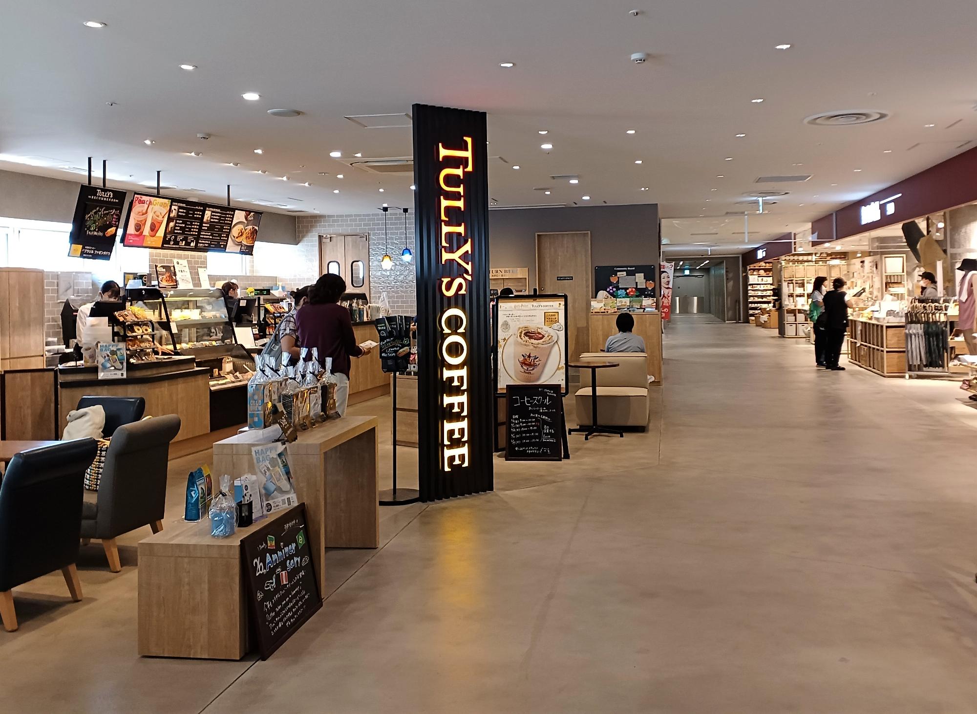 星天qlayの「Bゾーン」は改札を出て目の前。帰り道の買い物に役立ちそうな店舗が、コンパクトに並んでいます。自動ドアを入ると、「無印良品 500」と「タリーズコーヒー」が向かい合わせになっています。