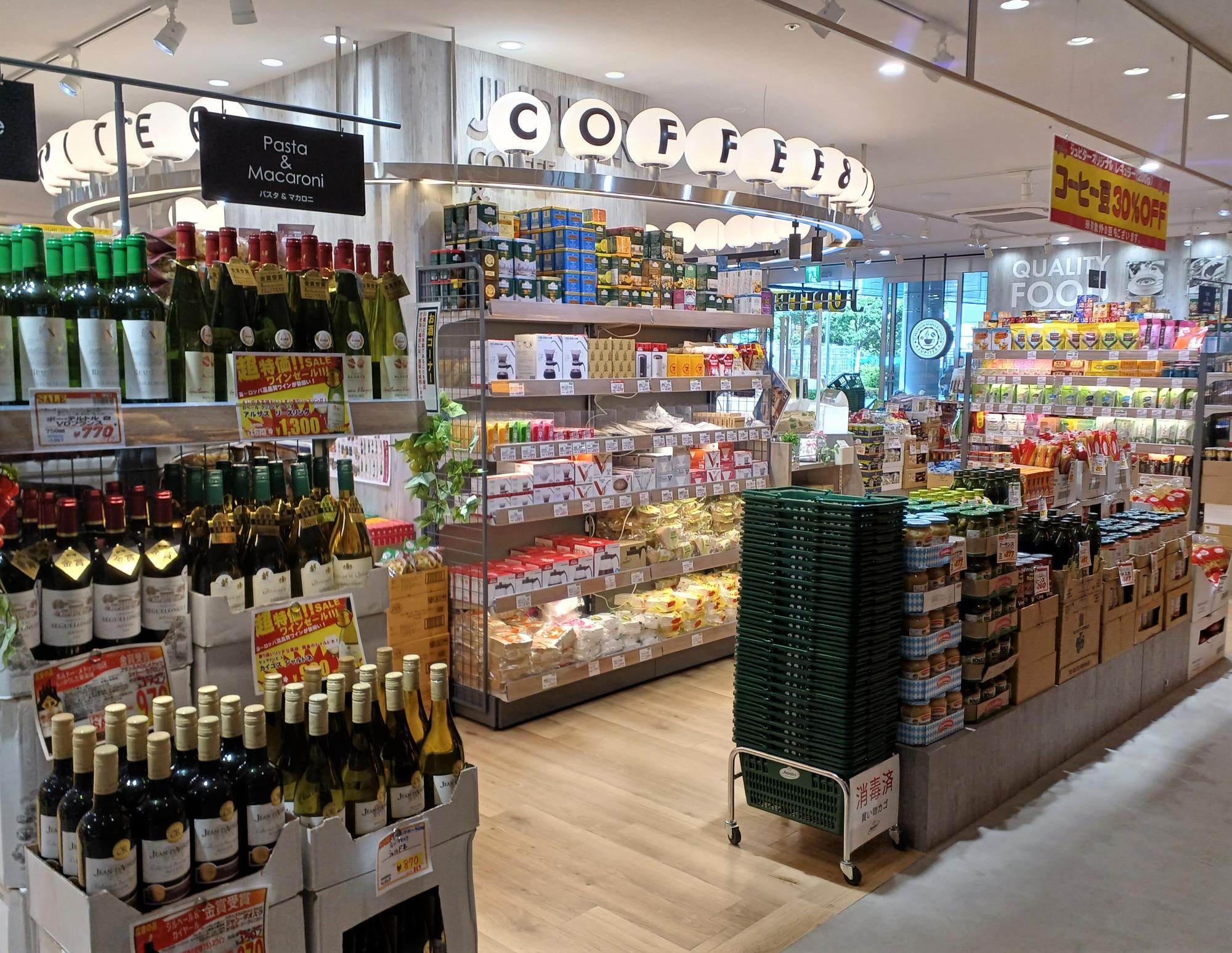 改札階から一つ降りた「Bゾーン」2階部分には、食品雑貨の「ジュピター」、「ハックドラッグ」、「相鉄ローゼン」など。