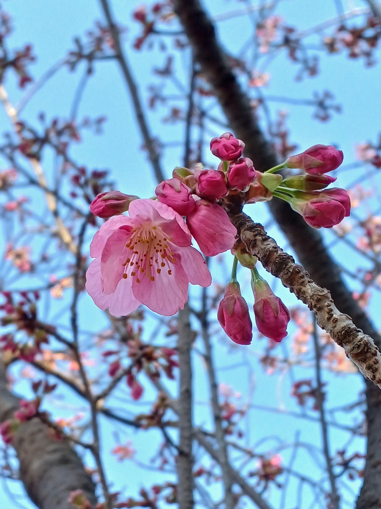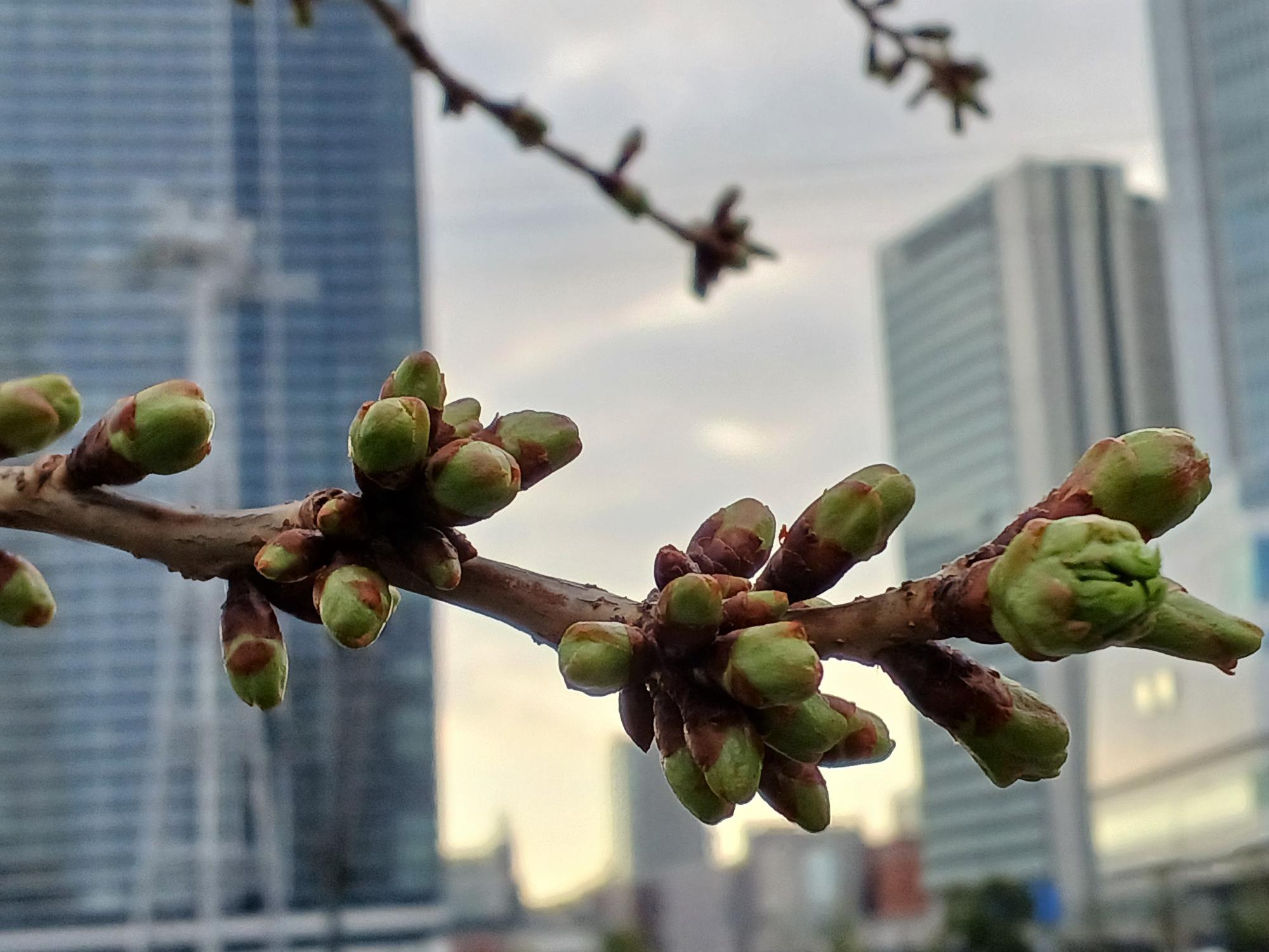桜木町駅側で探し出せば何とか、というレベル。まだまだ青いつぼみばかり。