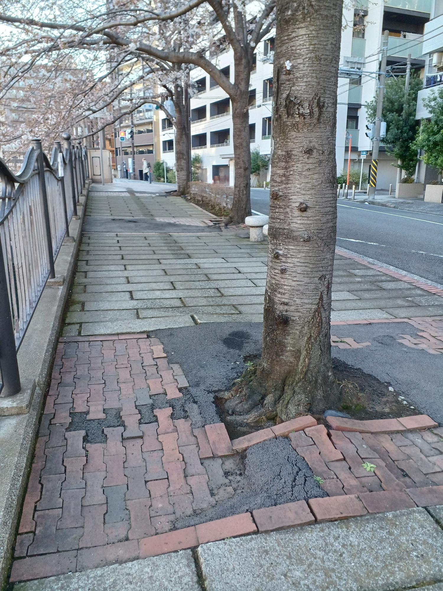 ちなみに桜鑑賞の際は、足元にもご注意。根を張った木の力は、アスファルトなど、何のその。