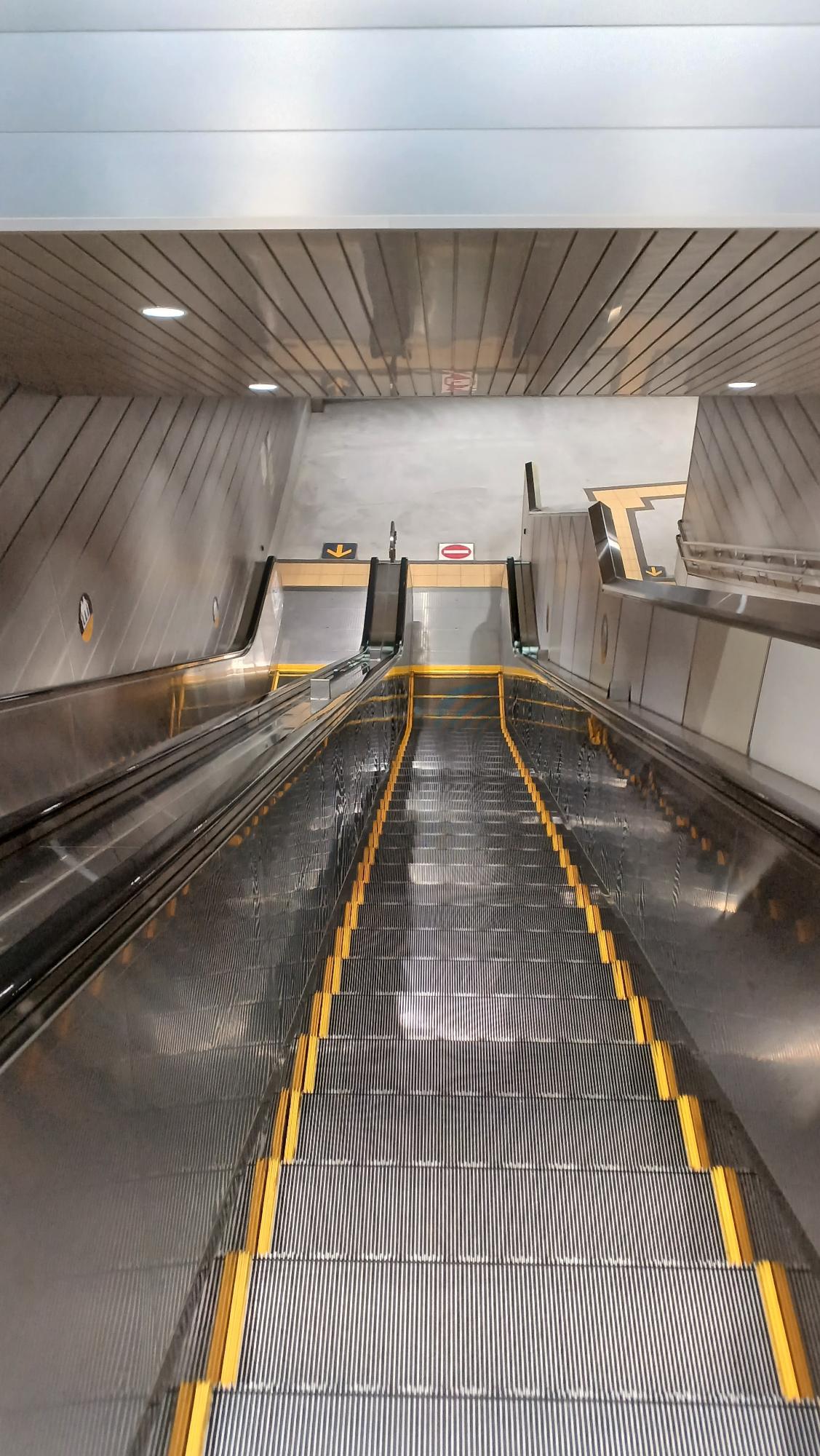 ピカピカのエスカレーターを下りる。ここで地下鉄構内の風を想像してほしい。空調の効いた地下からの風が上がってきて、心地よい。