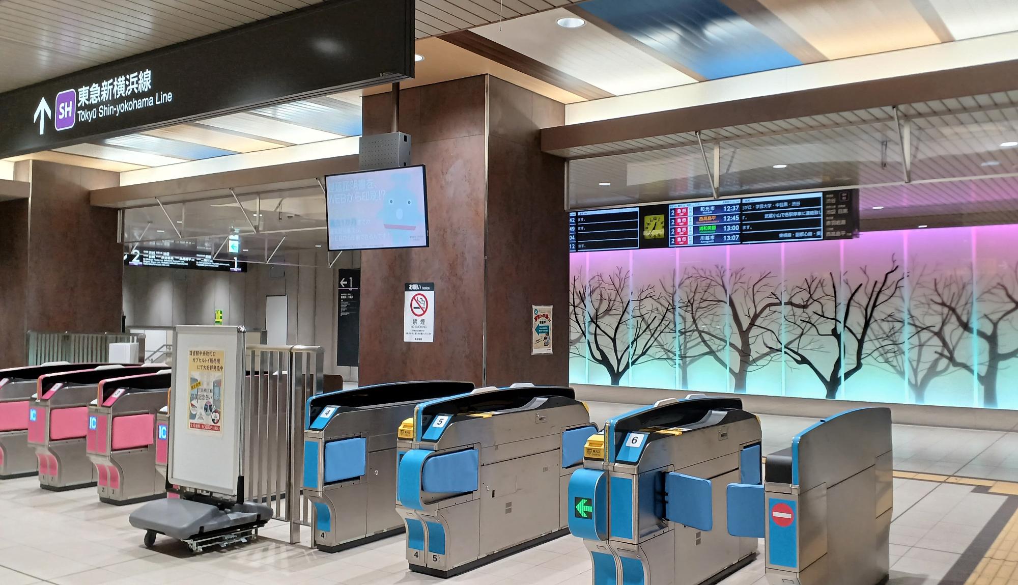新築の匂いが残る、新綱島駅改札。