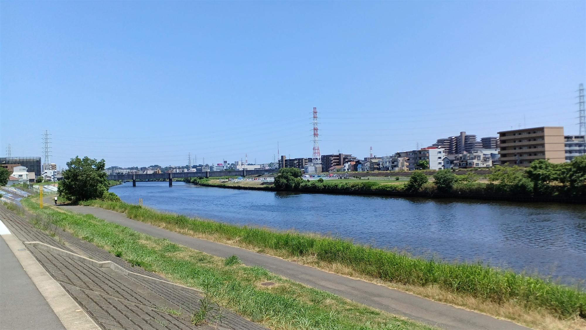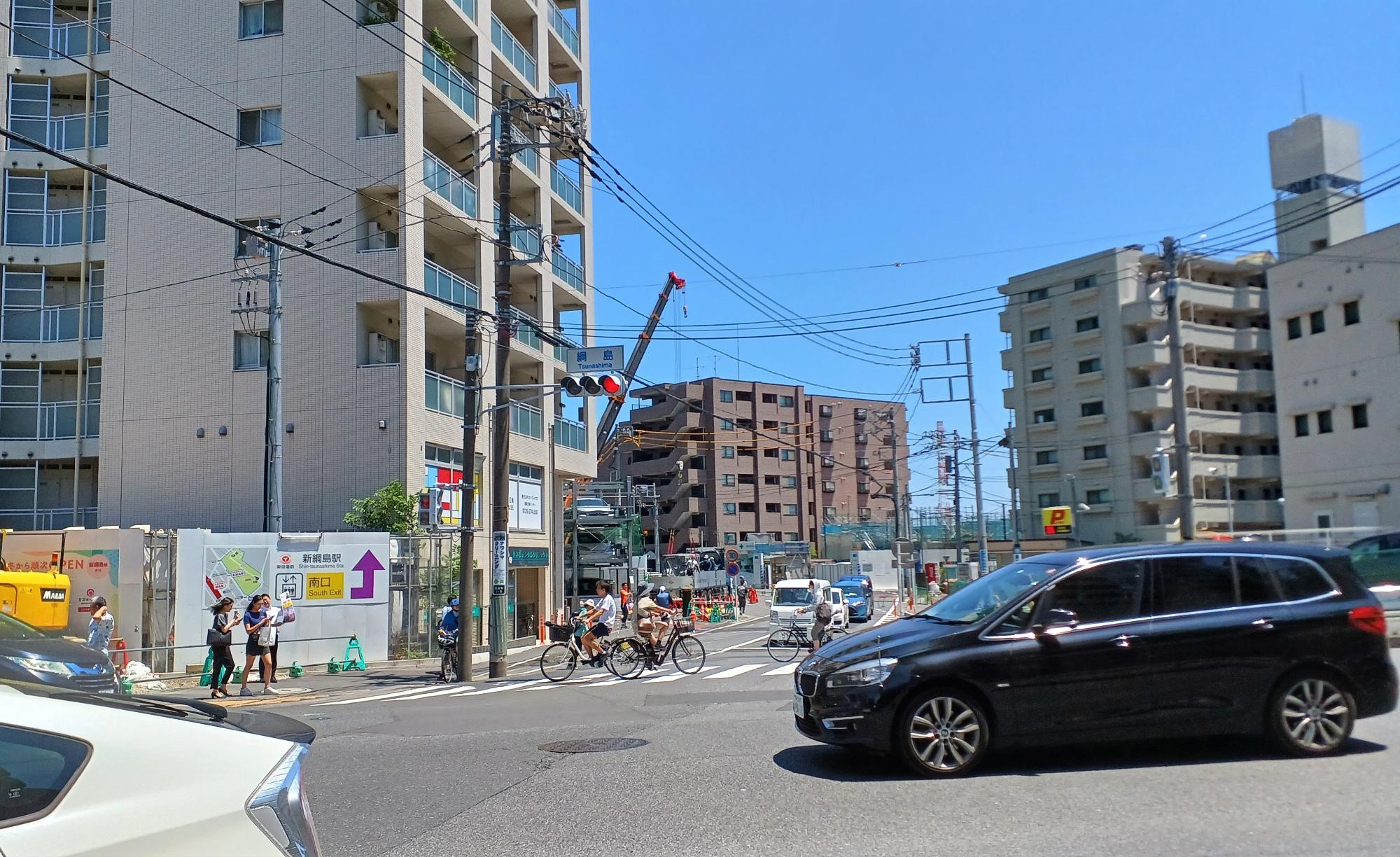 昭和の時代からある、綱島街道。南側には鶴見川。この見慣れた景色の下で、新綱島駅はひっそりと稼働している。