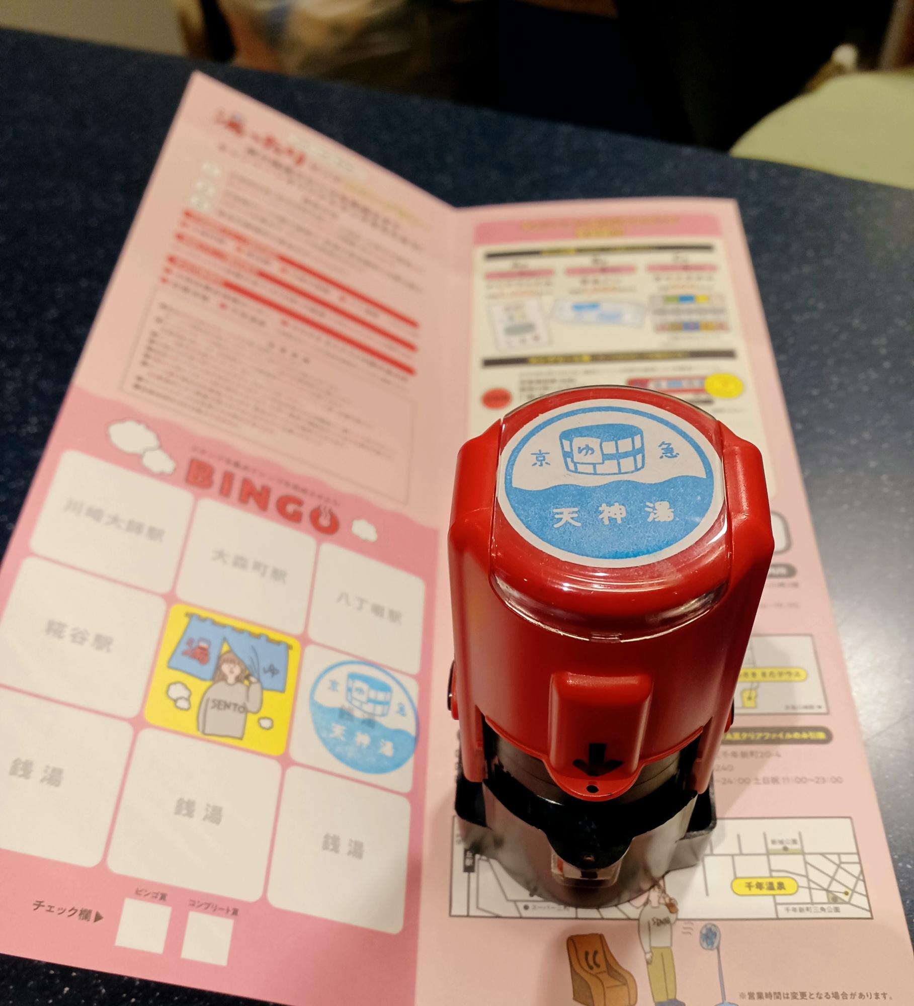 受付にて「湯ったりビンゴスタンプラリー」のスタンプを押してもらう。こちらは大田・川崎の銭湯と、京急の駅とでスタンプを集め、「ビンゴ」の数に応じて手ぬぐいやサウナタオルなどがもらえるイベント。銭湯業界はイベント豊富で、元気です!