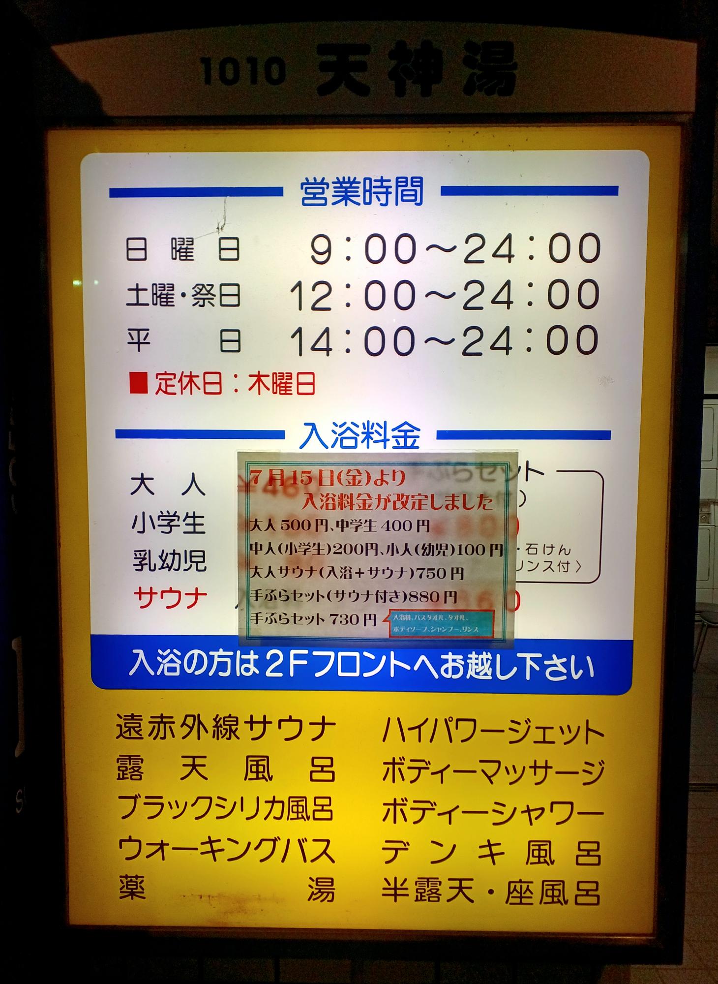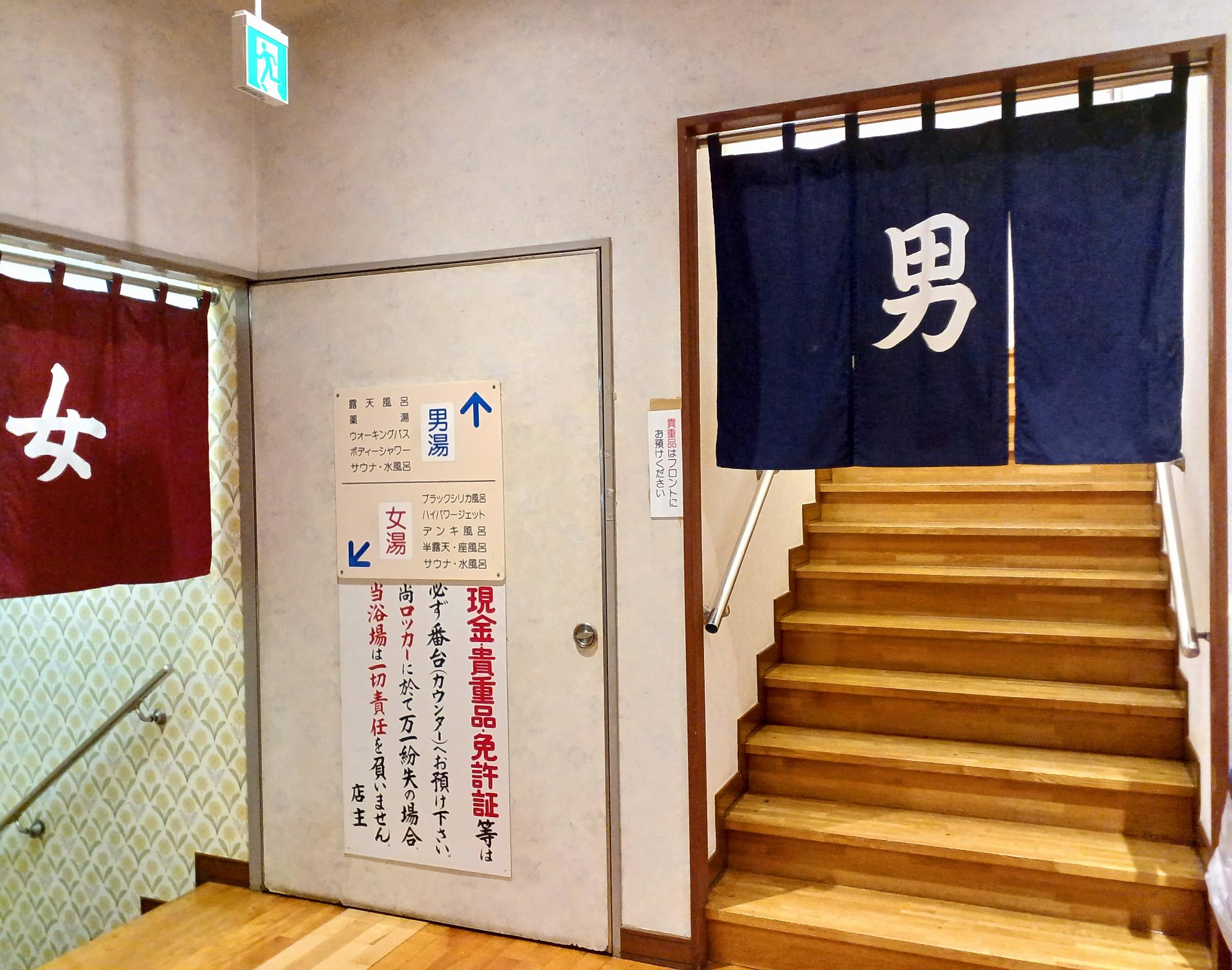 受付フロアから階段を上り下りした先に浴場があり、この日は1階が女湯、2階が男湯(階段を上がった先も「2階」表記)。「ブラックシリカ風呂」をはじめ、石の使い方にこだわりを感じられるつくり。お風呂の種類が豊富で、「ジェットバス」「座風呂」「ボディーマッサージ」など、ジェット系だけでも複数楽しめます。またサウナ―たちには、天神湯の水風呂はよく「ととのう」、と評判とのこと。