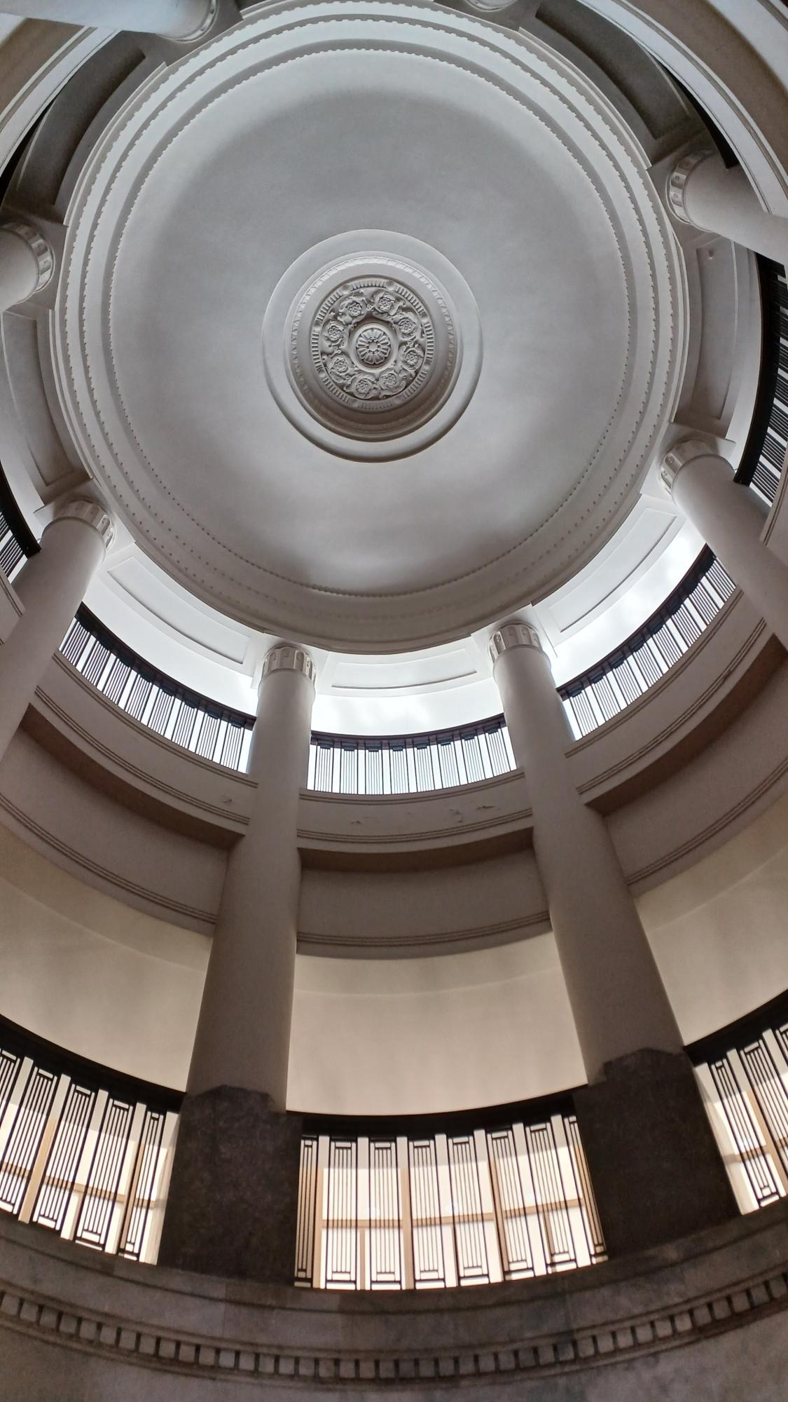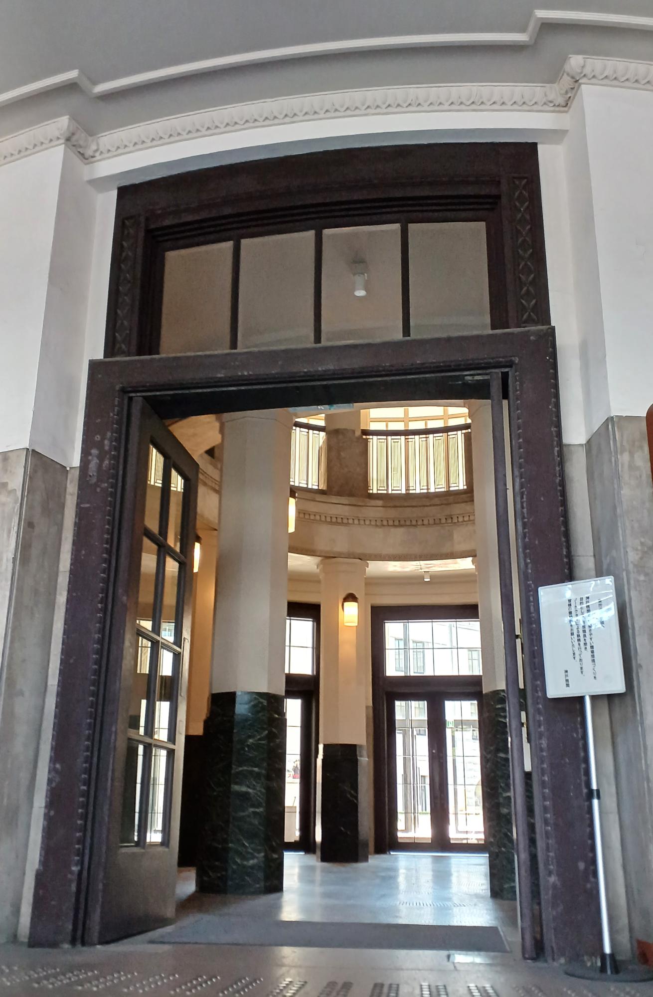 神戸税関の広報展示室は、予約不要・入場無料で見学できる(20名以上の団体客は要予約)。旧館エントランスホールはこの重厚感。