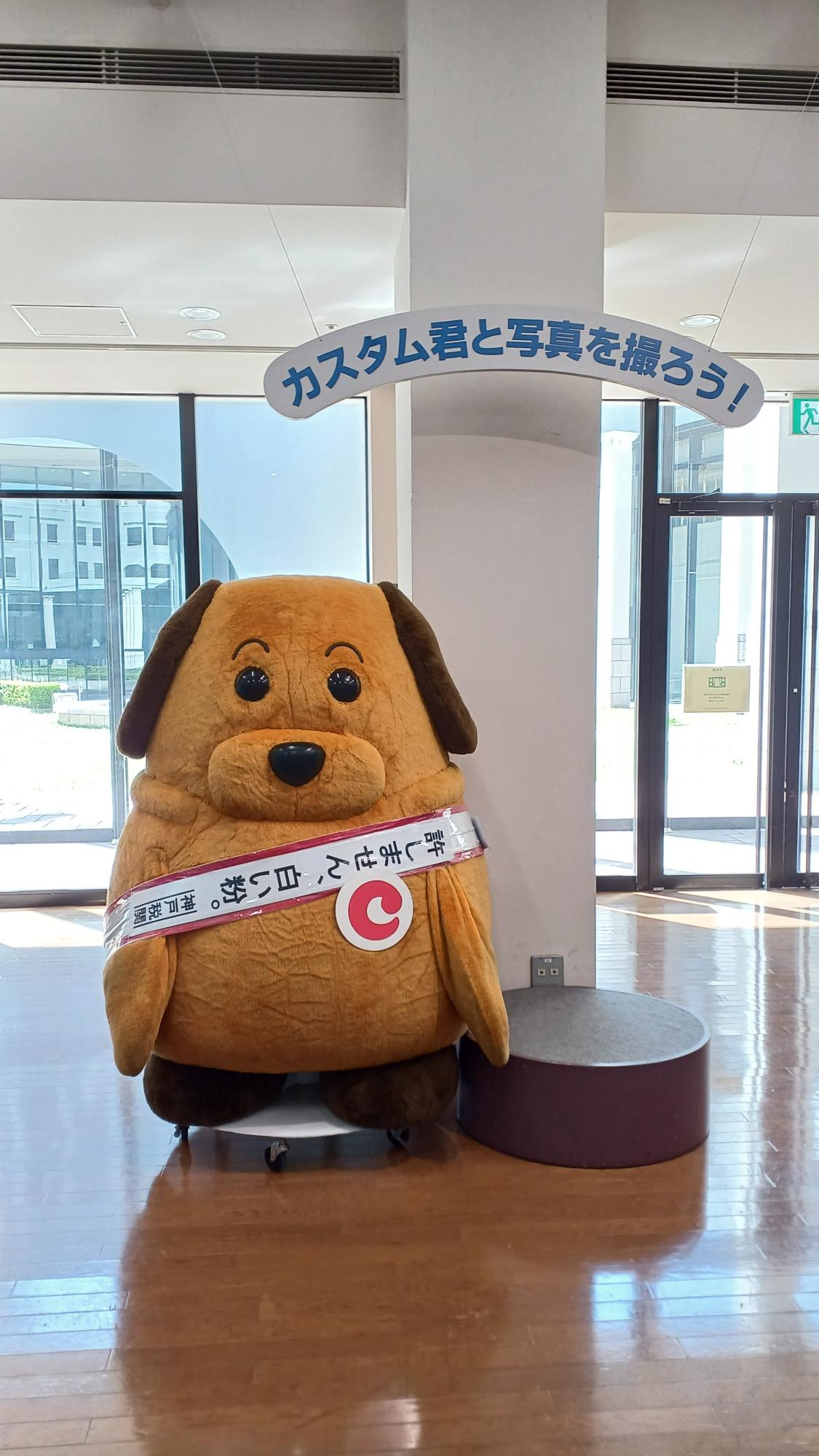 密輸を許さない「カスタム君」(税関イメージキャラクター)は、神戸でも横浜でも活躍中。