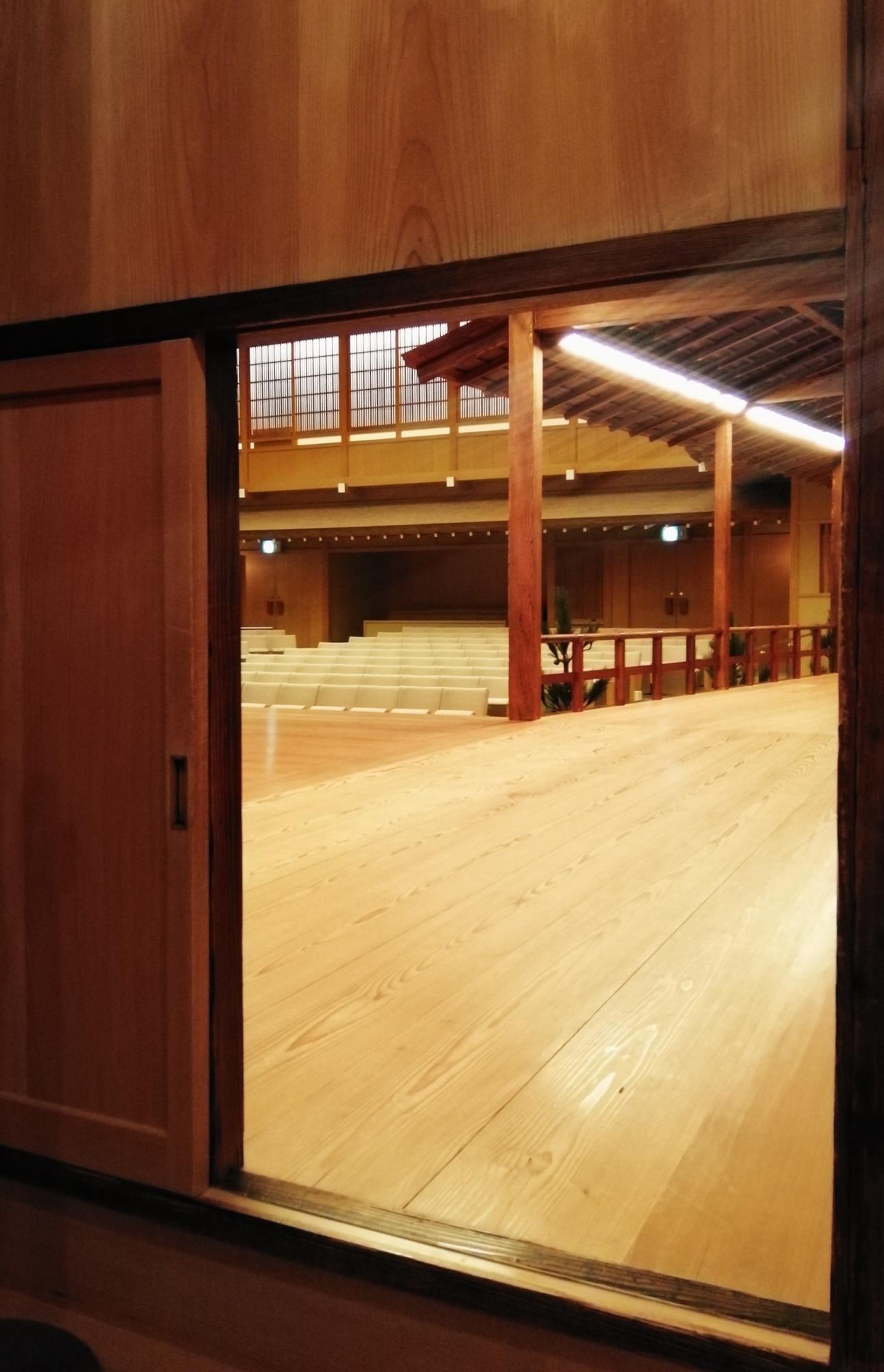 本舞台の上手奥にある、切戸(きりど)の内側から客席を眺める。