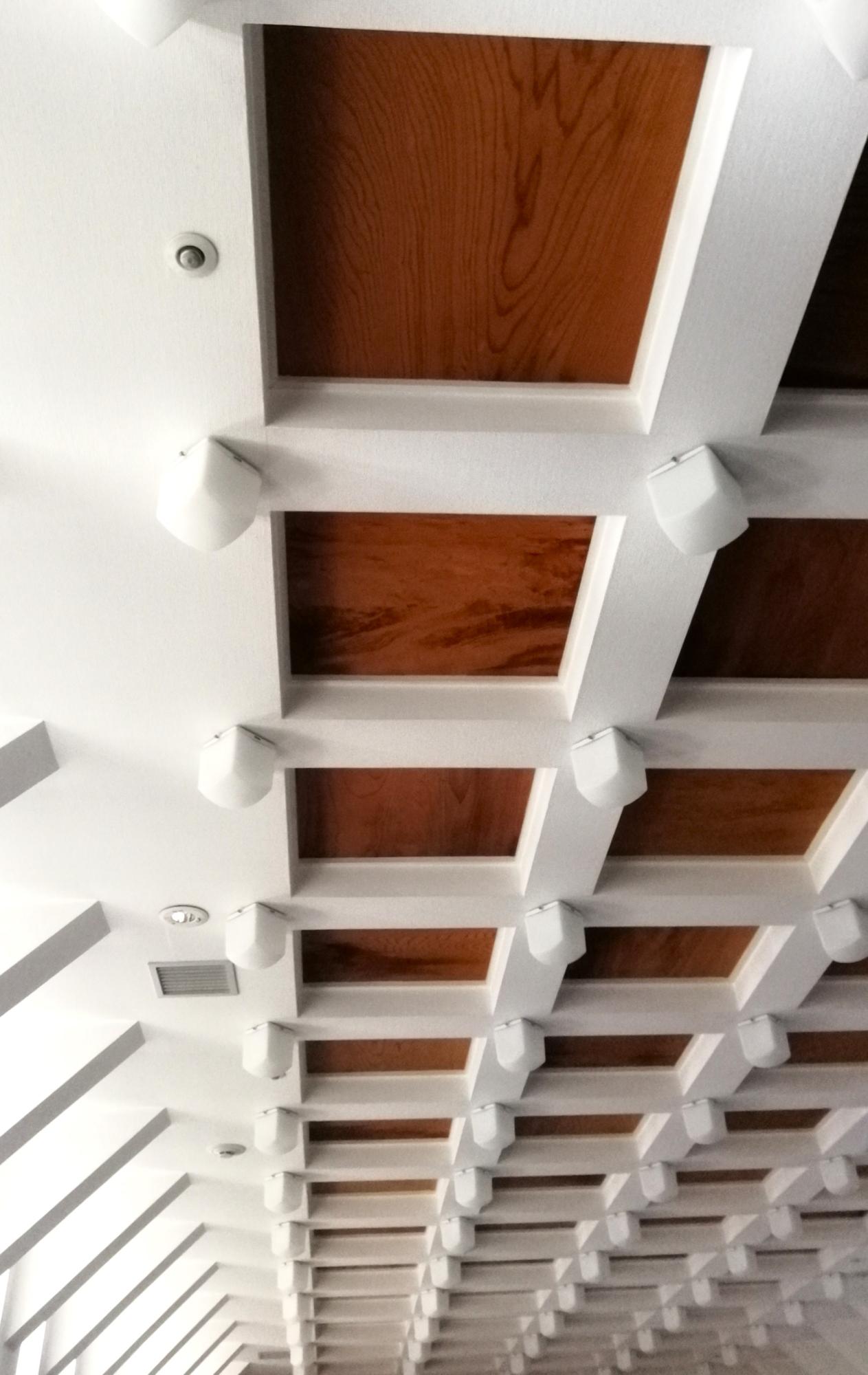 観客のための休憩スペースには、「染井能楽堂」時代の天井板が残されている。