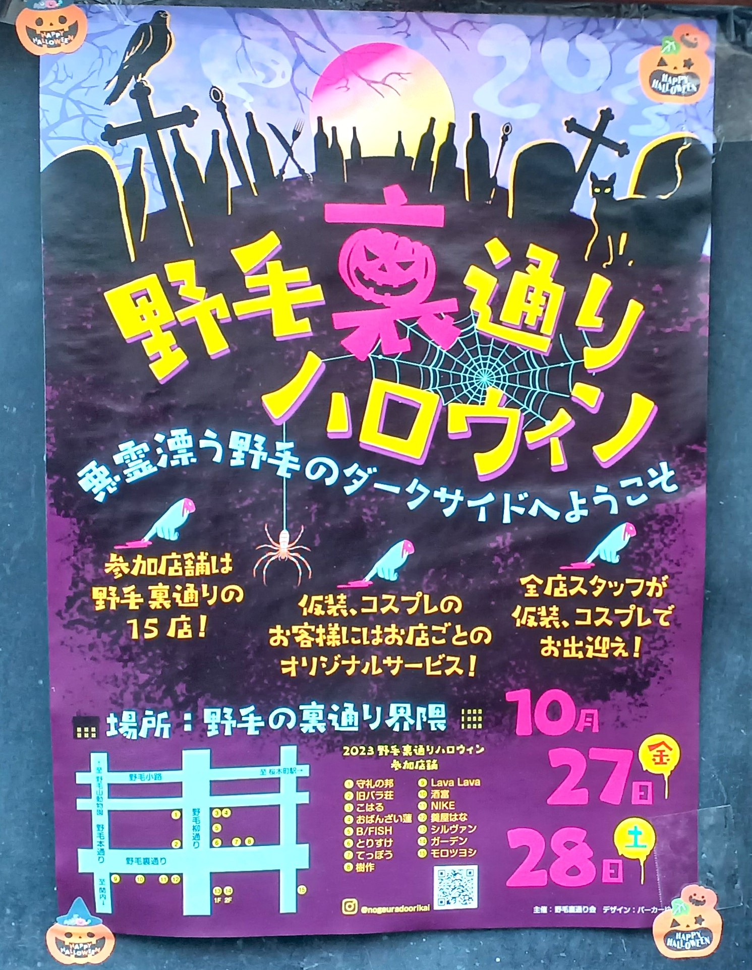 イベントのキャッチコピーは「悪霊漂う野毛のダークサイドへようこそ」。参加店舗ではお店のスタッフも仮装予定。