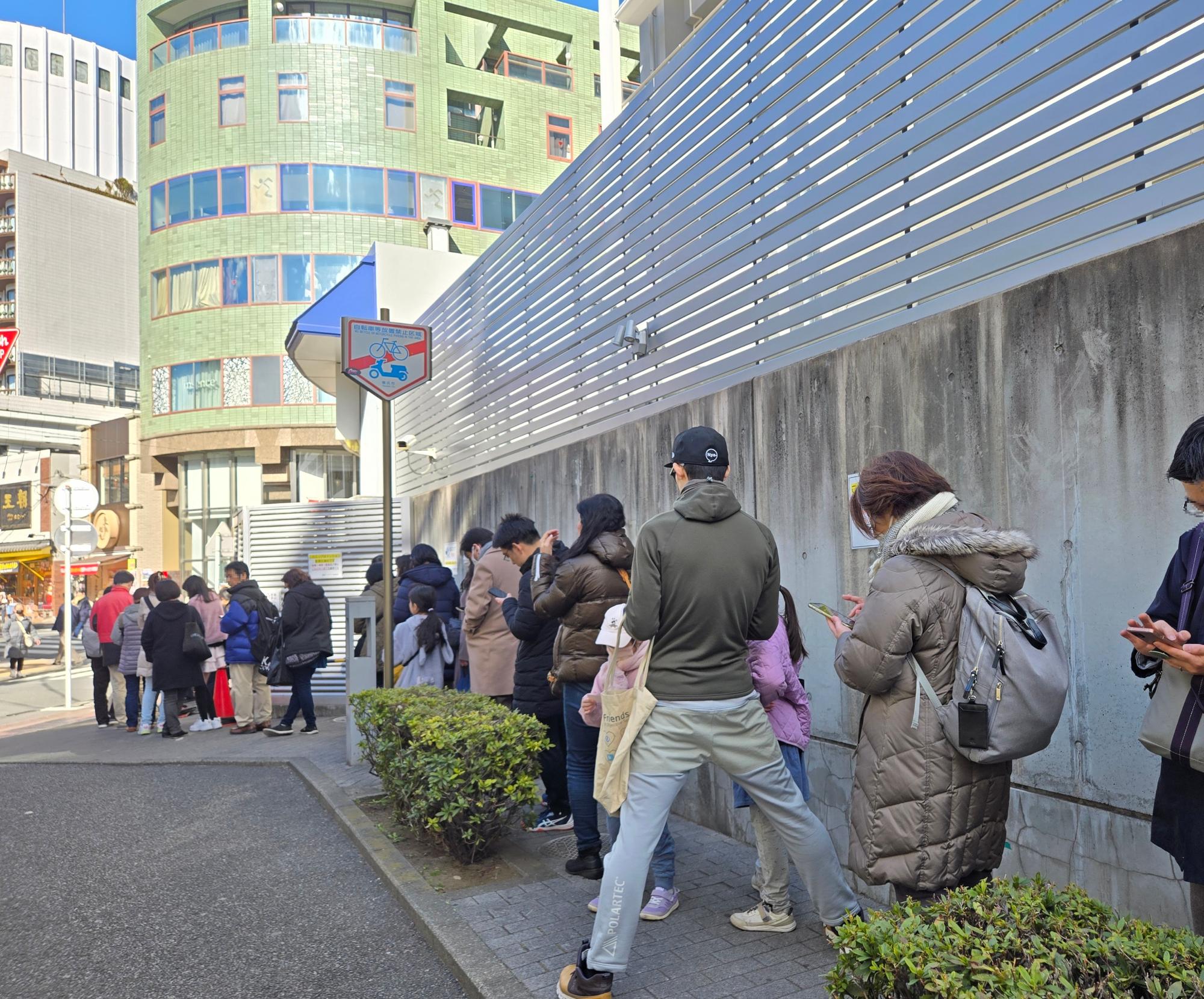 列はぐるりと会場の外に続いて、コンクリート壁沿いに。