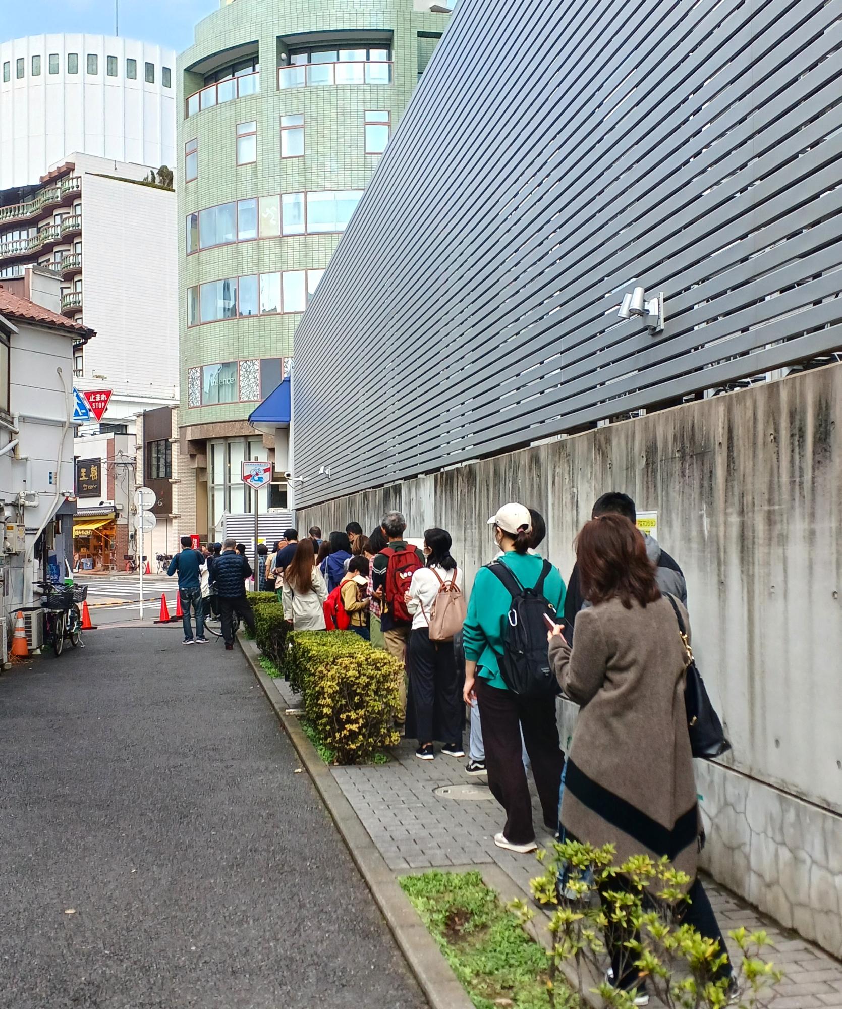 配布開始の11時には、列はここまで延びていた。通りかかる観光客が、「なんの行列?」とのぞき込んでいく。