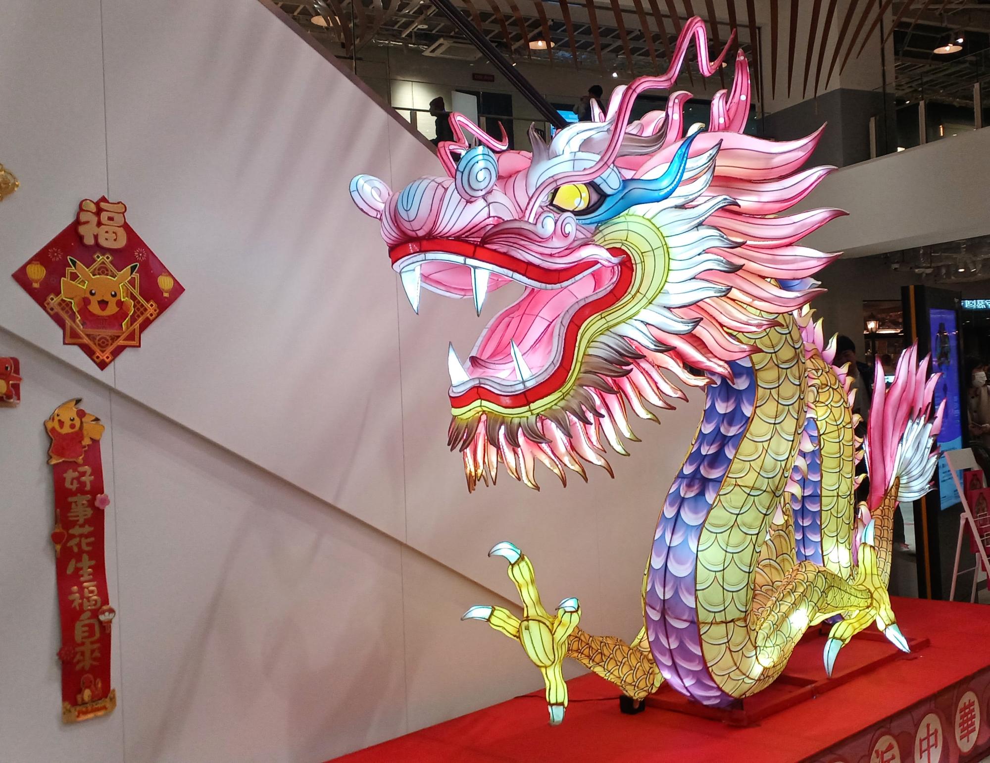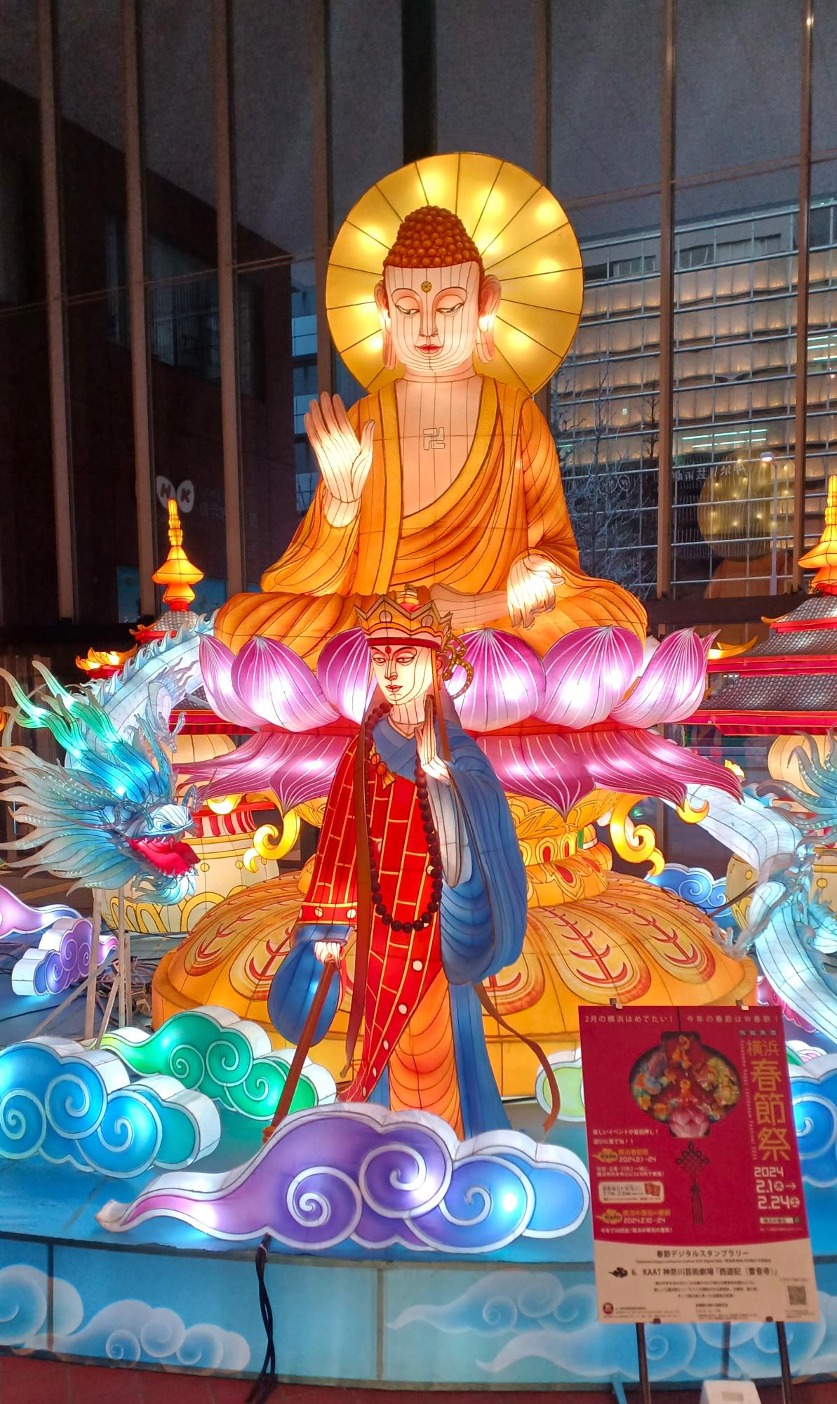 KAAT神奈川芸術劇場のランタンオブジェは、西遊記がテーマ。広いロビーを生かして、高さも幅もある展示で豪華だ。