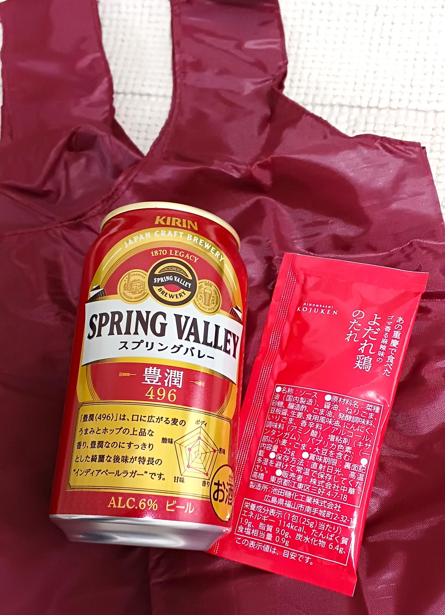具体的なモノとしてその場で受け取ったのは、キリンビール「スプリングバレー」中華・高橋の「よだれ鶏のたれ」富士通Japanのエコバッグ。なるほど、このバッグで鶏肉を買いに行って、ビールを飲みながらよだれ鶏を作れというお告げだな!