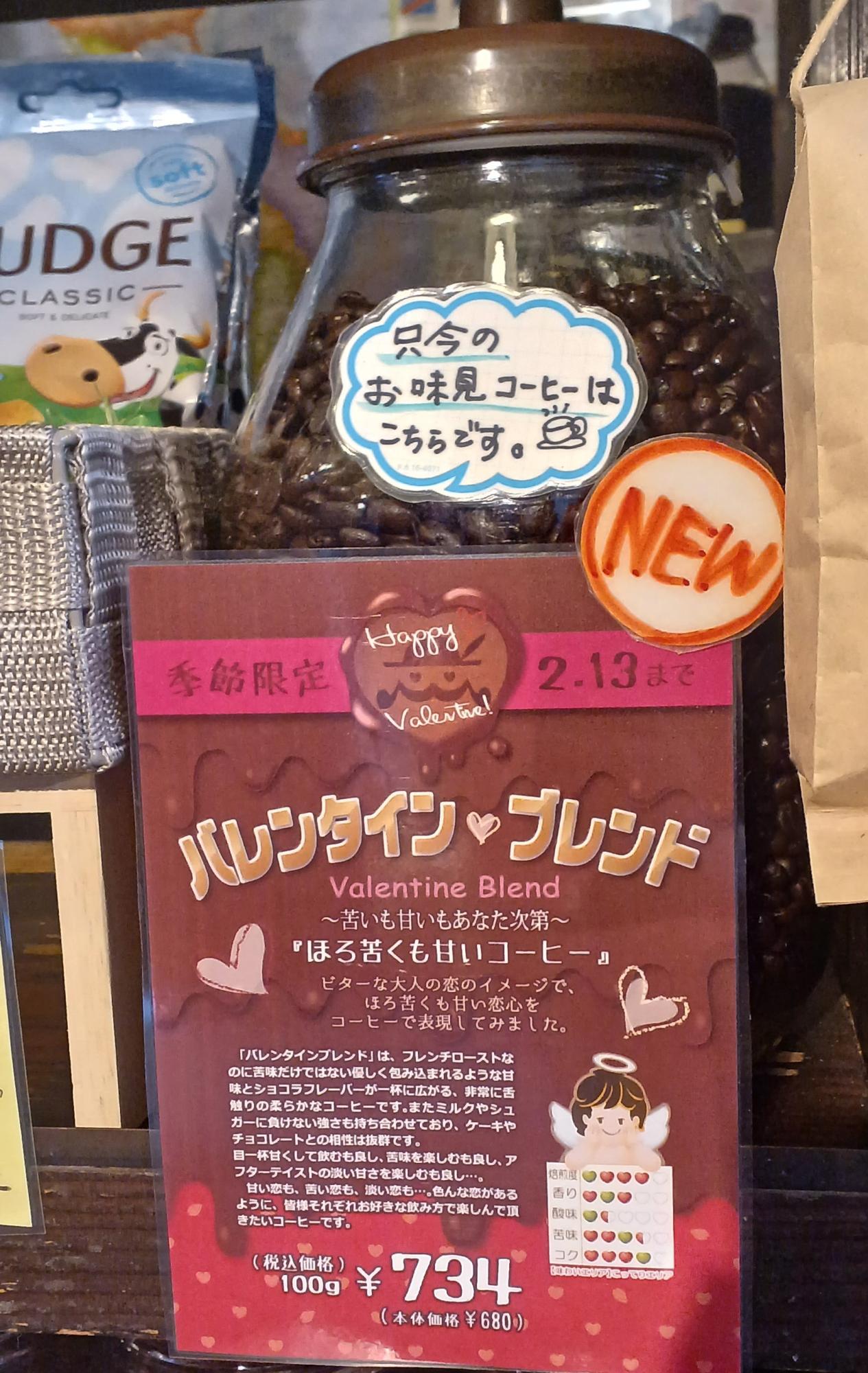 写真は「南蛮屋」イセザキ店。2月13日まで「バレンタインブレンド」が販売されている(取り扱いは、南蛮屋全店およびネットショップ)。