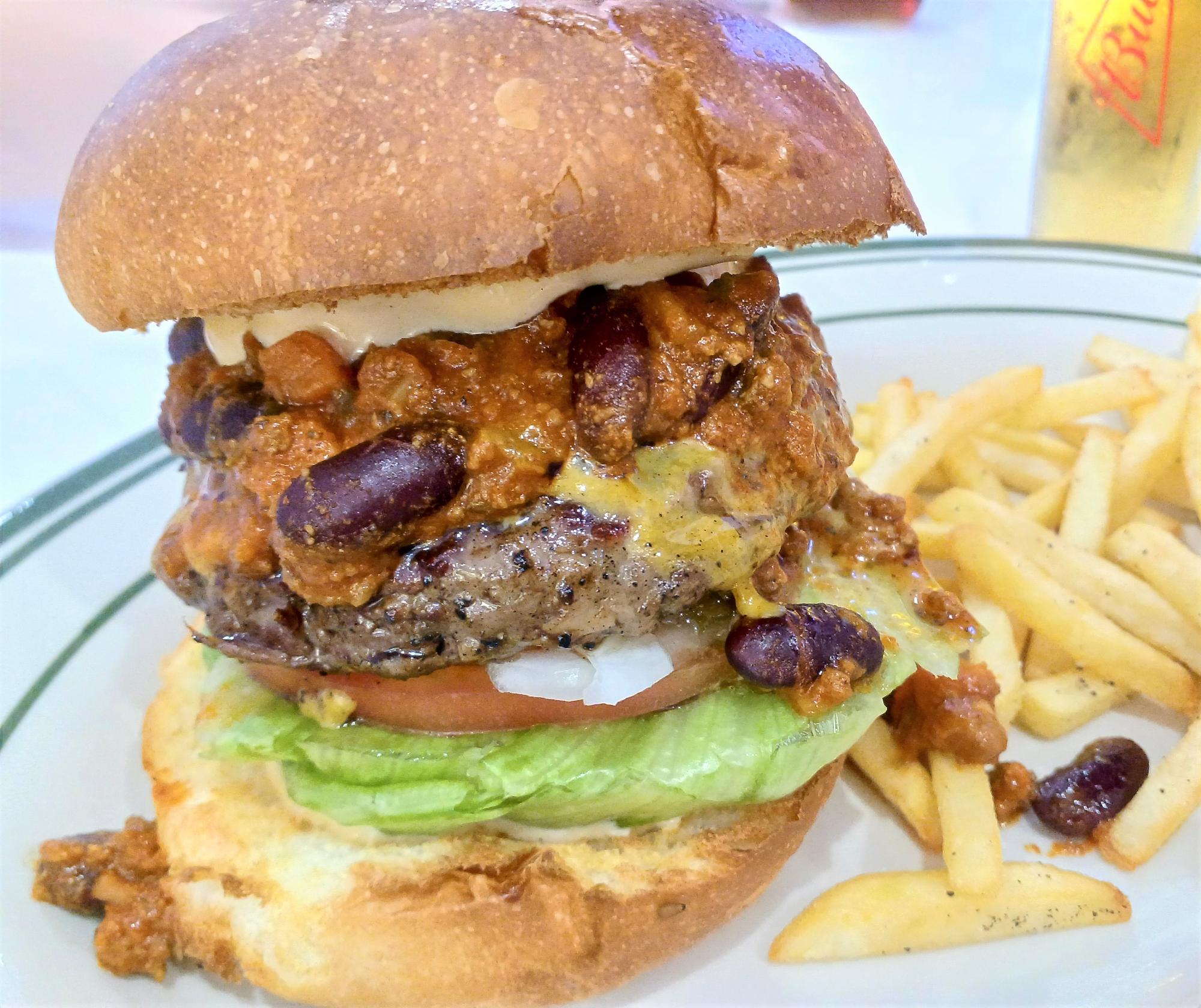 こちらは「チリチーズバーガー」。こぼれおちるチリビーンズ!マヨネーズソースとチーズとチリビーンズの、甘さと辛さとしょっぱさの競演。バンズにもこだわりが感じられ、パン好きの人からも高評価が得られるのではないでしょうか。