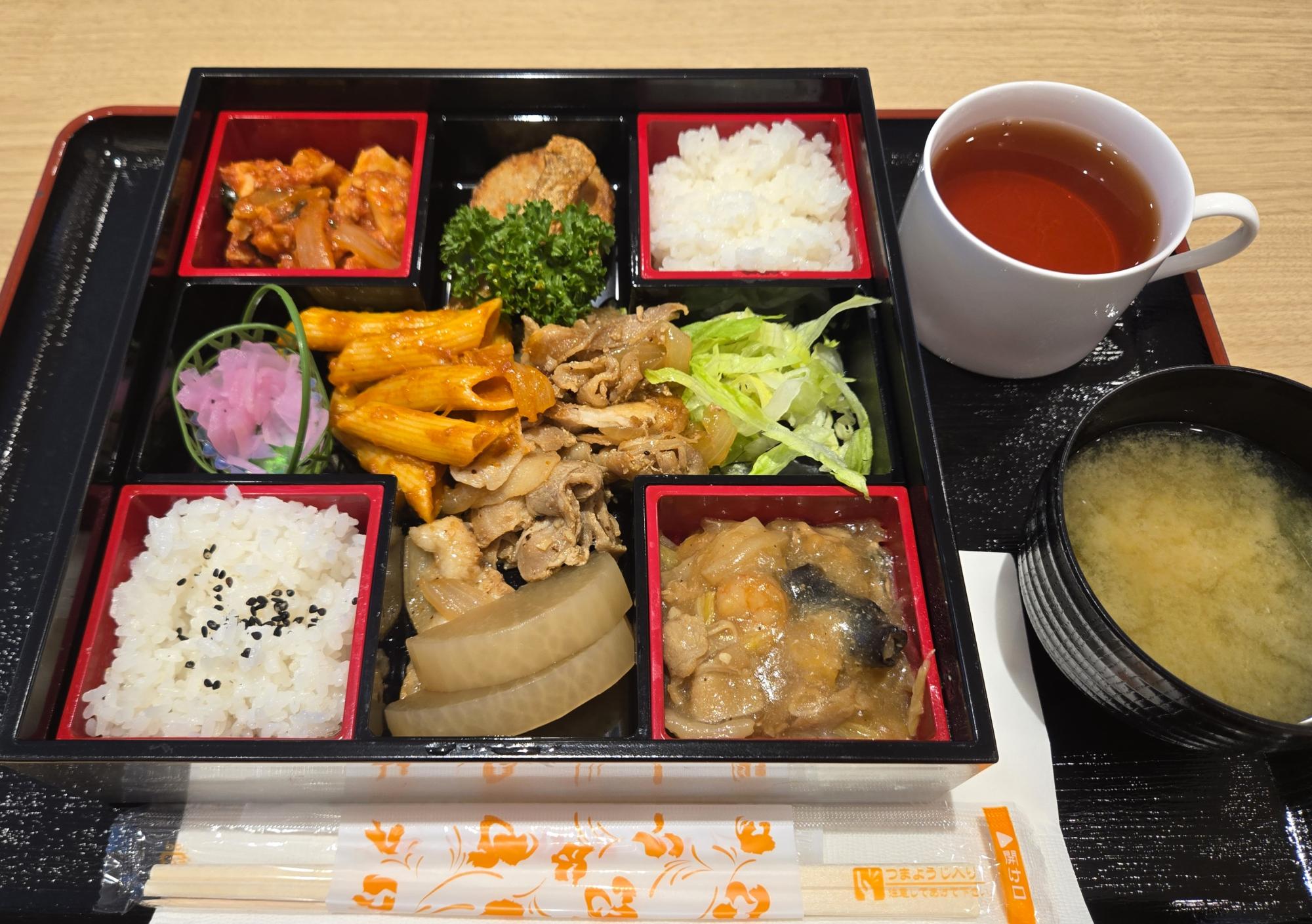 ランチタイムには「日替わり弁当」もある。この品数で、一つ一つのおかずの量もしっかりとあり食べ応えがある(日替わり弁当は平日の11:30~14:00、数量限定)。