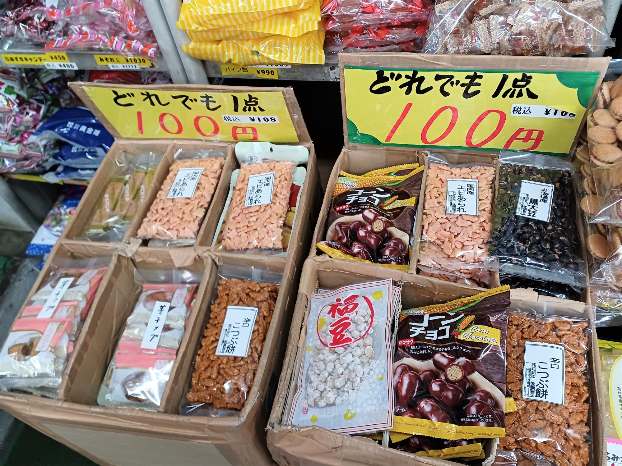特売の箱の中は、さながら「大人の駄菓子屋」。