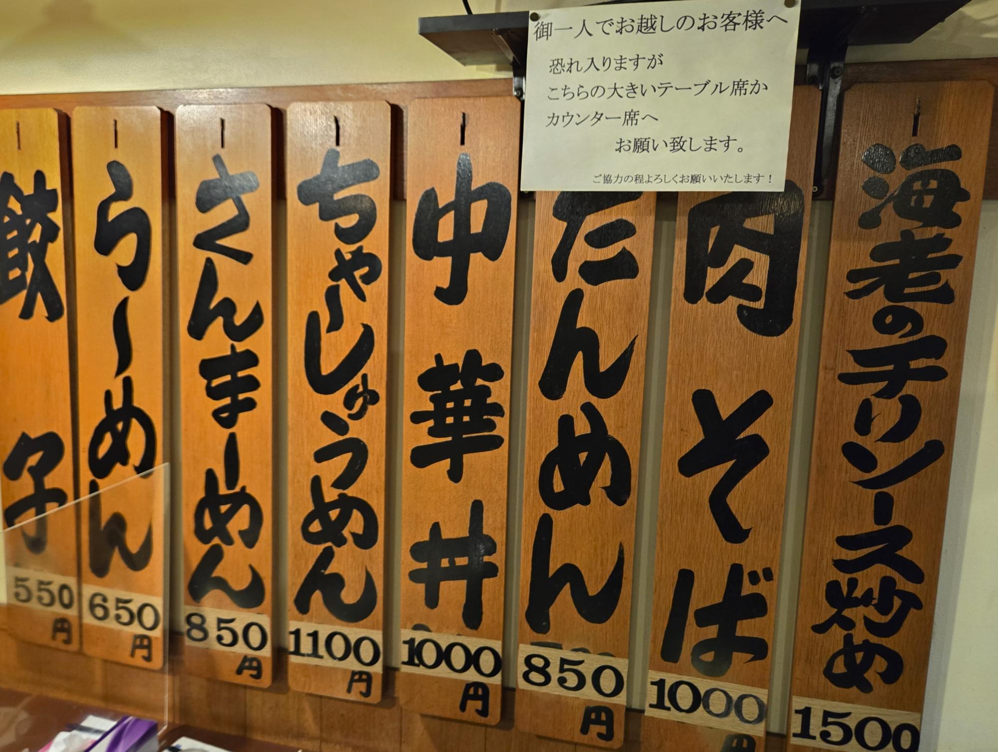 壁にかかった大型のメニュー札。どこか懐かしく活気のある雰囲気が醸し出されている。