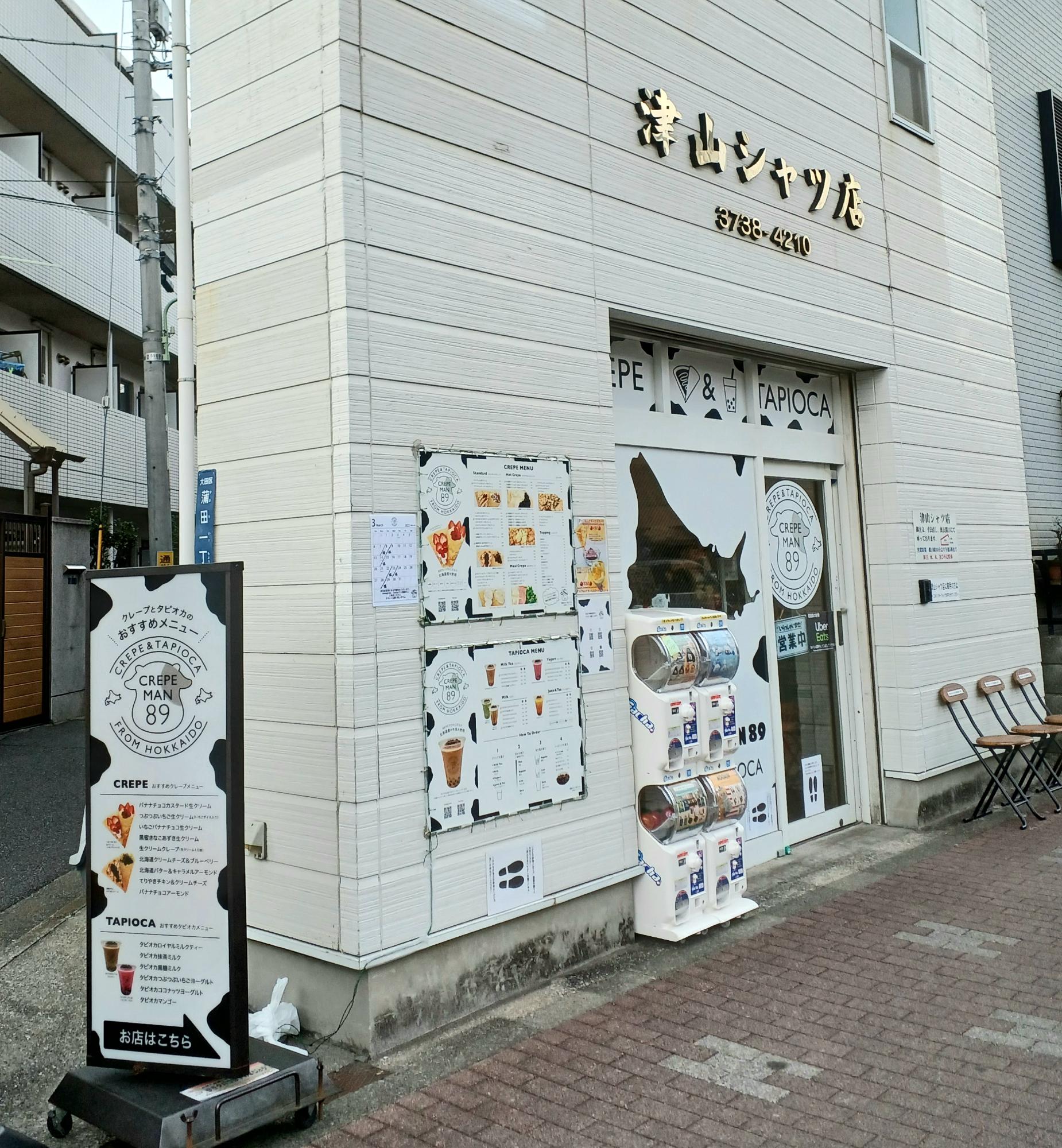 JR蒲田駅東口を出て、徒歩8分。東邦医大通りを大森方面に進んだところに「クレープマン89」がある。細長い三角形のビルが目印。北海道産の牛乳や小麦粉を使用した、クレープ&タピオカドリンク店だ。