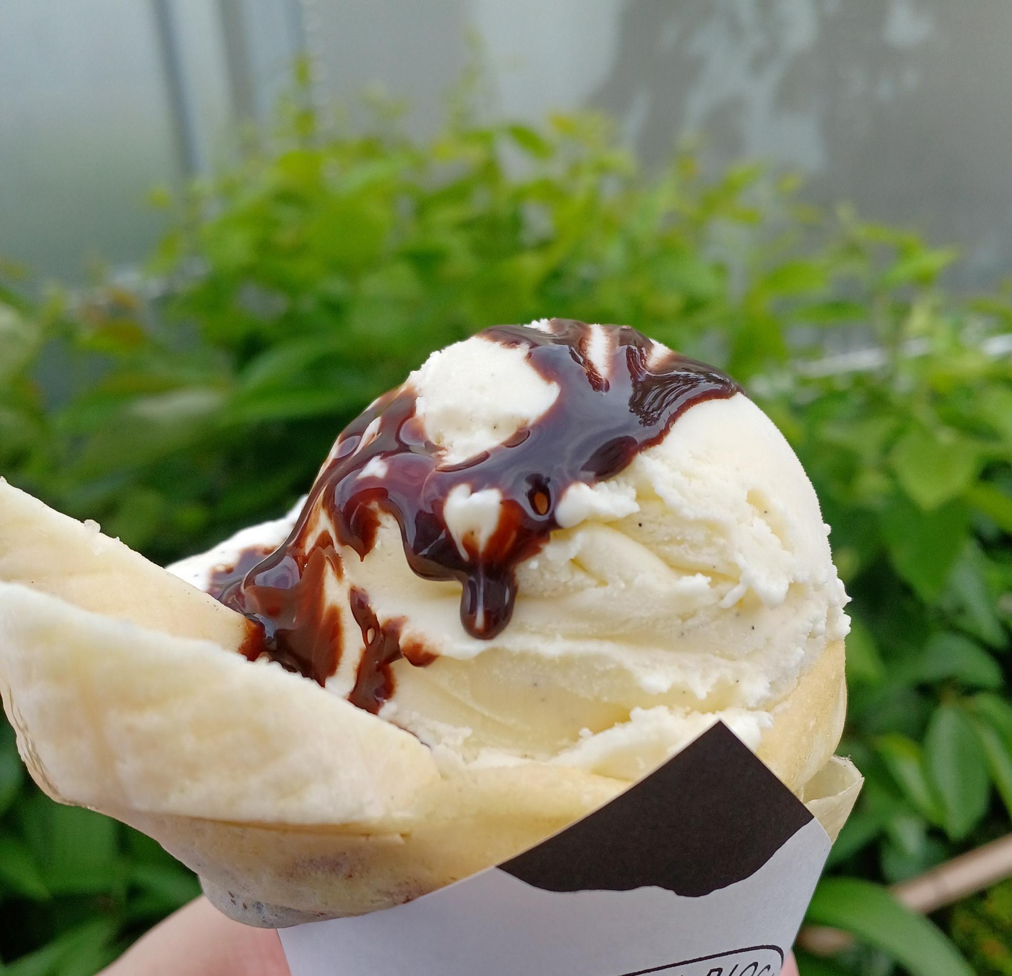 トッピングで「北海道バニラアイス」を乗せるとこうなる。なぜだろう、甘酸っぱい青春の1ページを感じるのは…。ただおそらく、青春時代のものよりも素材が本格派。