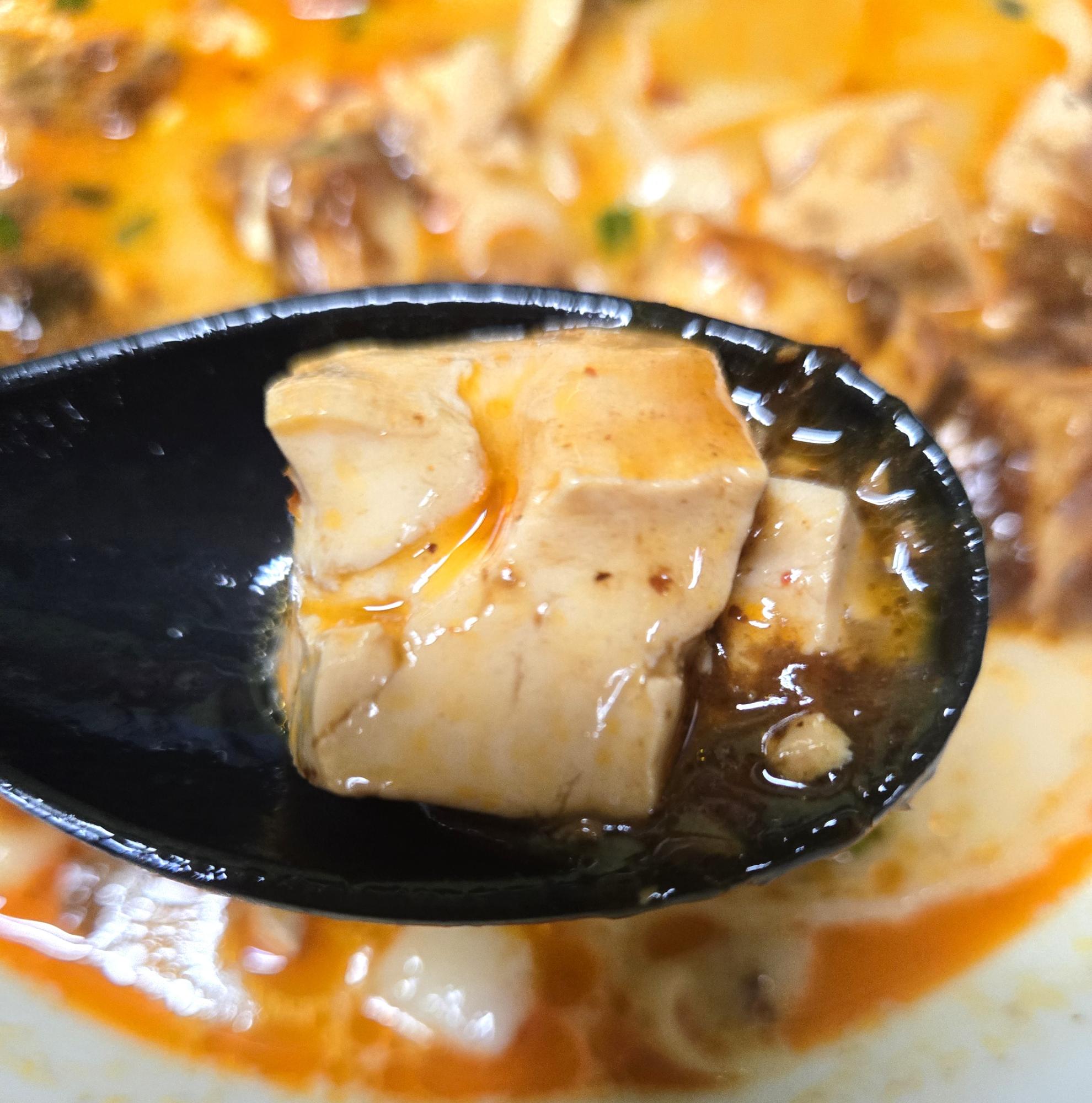 味のしみ込んだ麻婆豆腐が旨い。麻婆のソースが溶け出す分、「牛肉刀削麺」に比べてスープの味が濃い。辛さもしっかりあって、半分食べたころには汗が噴き出す。