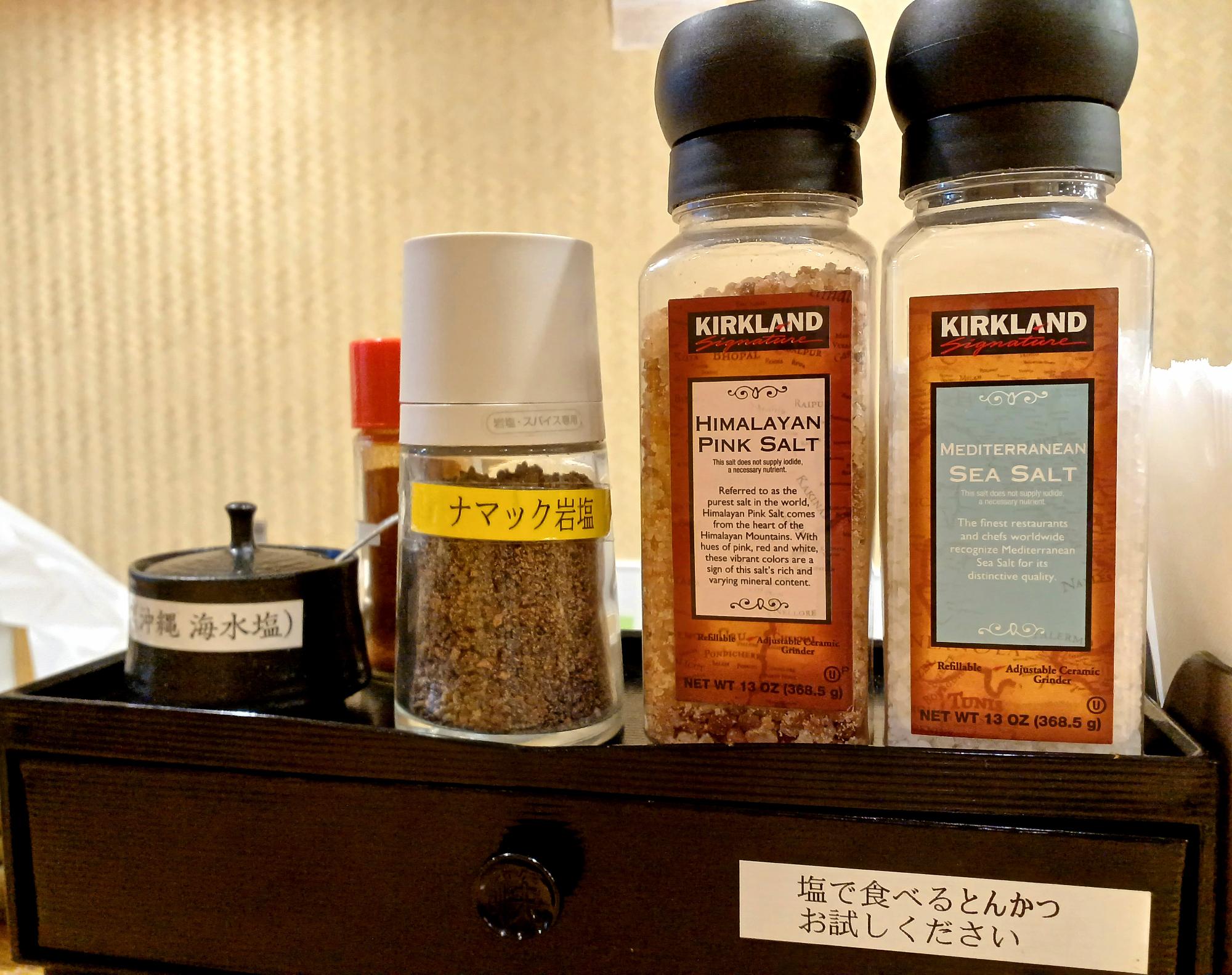 塩でいただく。用意されている塩の選択肢が多く迷いますが、筆者はヒマラヤピンクソルトを一番よく使いました。塩で引き立つ、肉と脂身の旨み。キャベツにはソースをかけましたが、とんかつそのものにソースをかける暇がなく…結局とんかつはすべて塩で食べきることに。