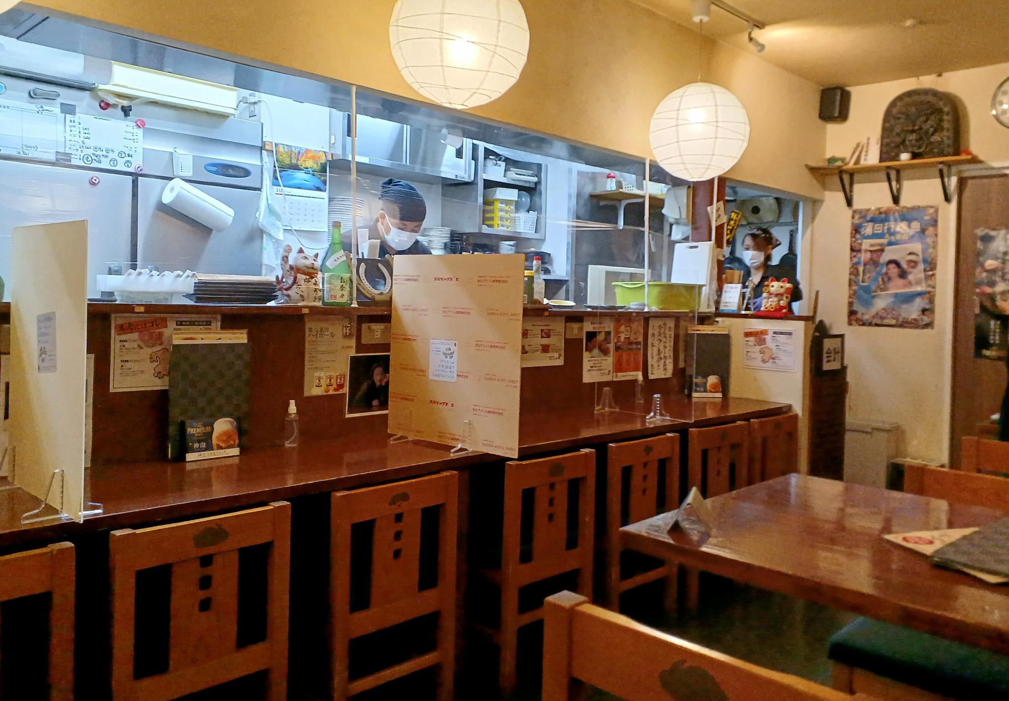一階にはカウンター席もあり、一人でも入りやすい。二階には座敷席も。