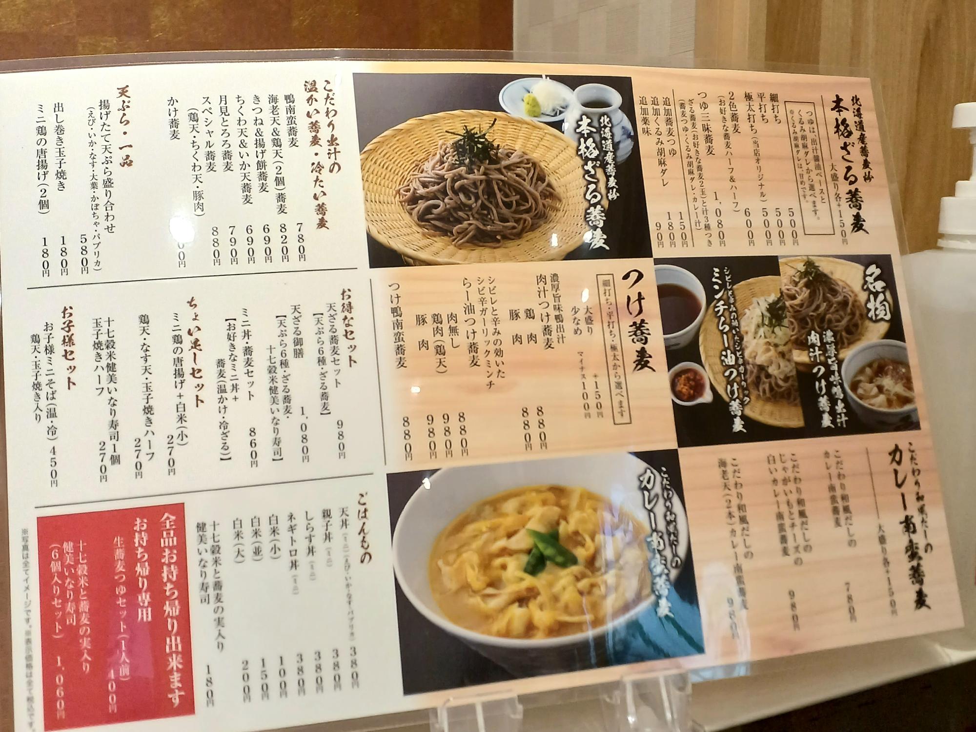 メニューは大きく「本格ざる蕎麦」「つけ蕎麦」「カレー南蛮蕎麦」に分かれており、そのほかにも「鴨南蛮蕎麦」「海老天&鶏天蕎麦」「月見とろろ蕎麦」など種類豊富だ。