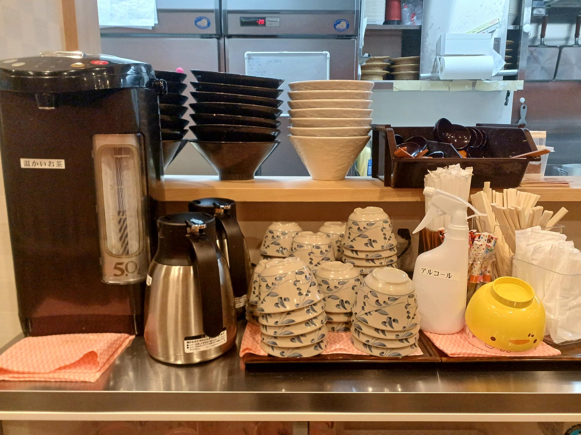 温かいお茶やそば湯の用意もある。