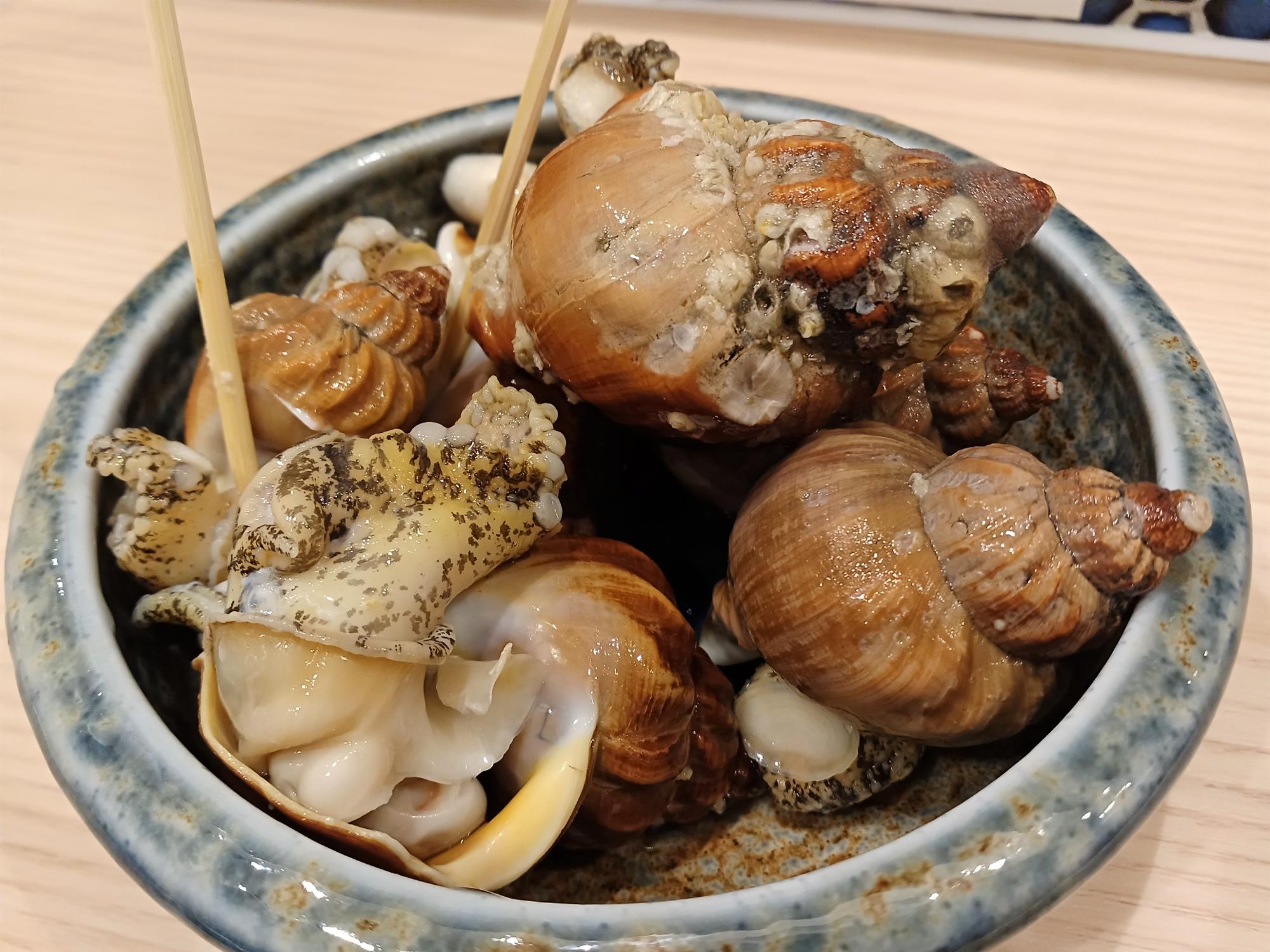 「活つぶ貝」。数も多く食べ応えがある!貝殻から奥までうまく取り出せるかが勝負。