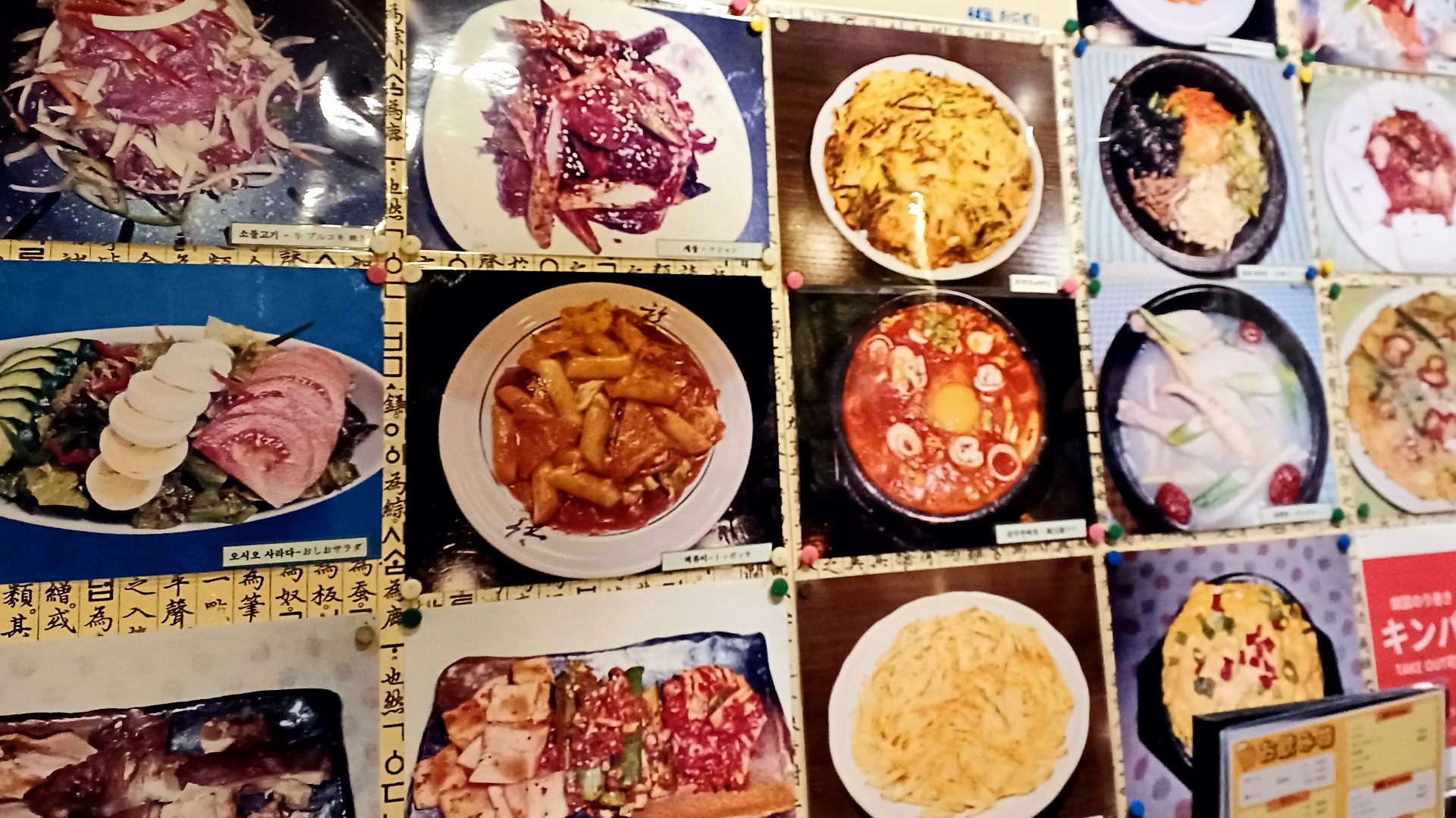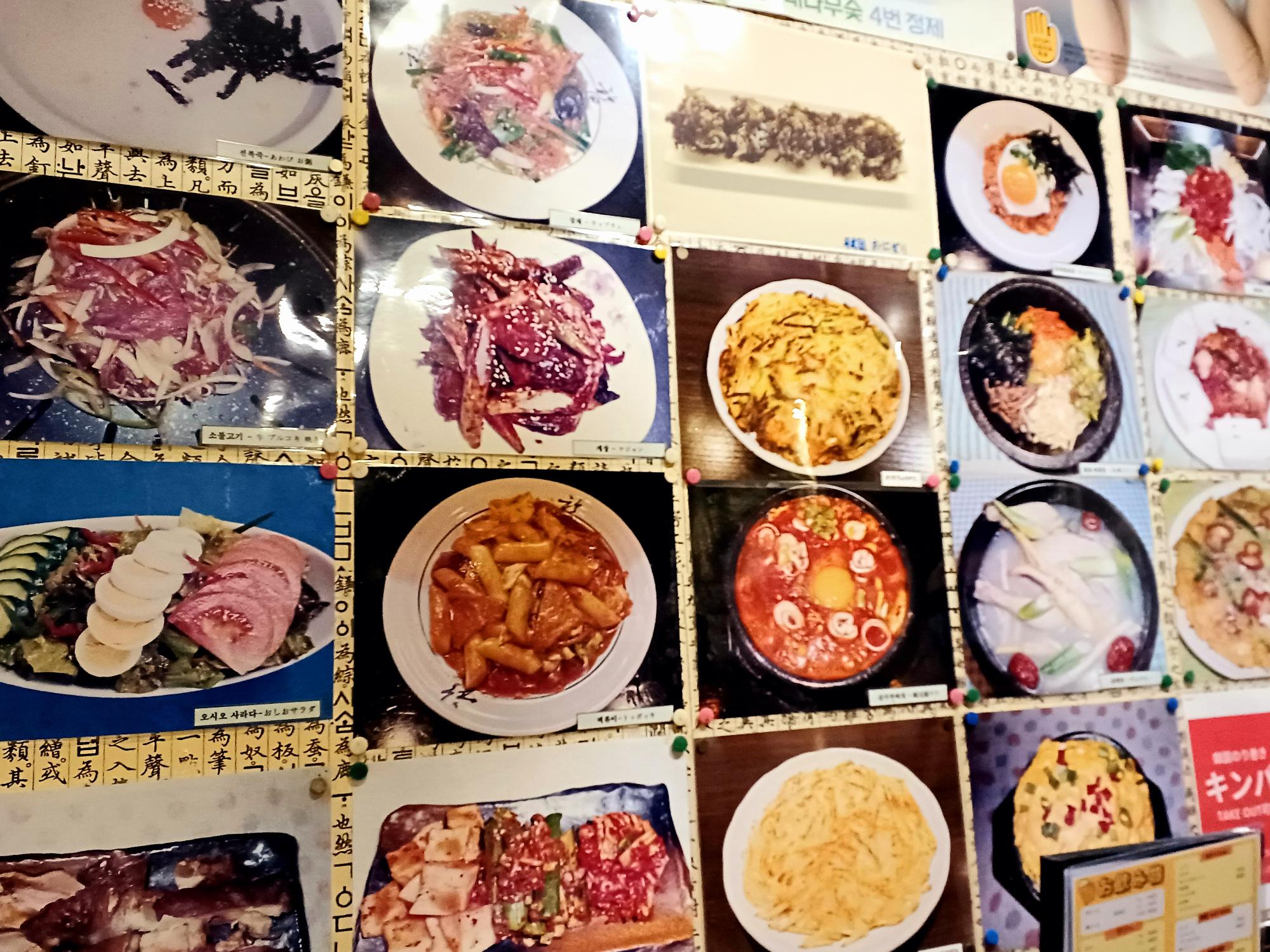今回利用した2階席の壁には、メニュー写真がいっぱい。気になるものをすべて食べられるまで…韓国通いは続きます。