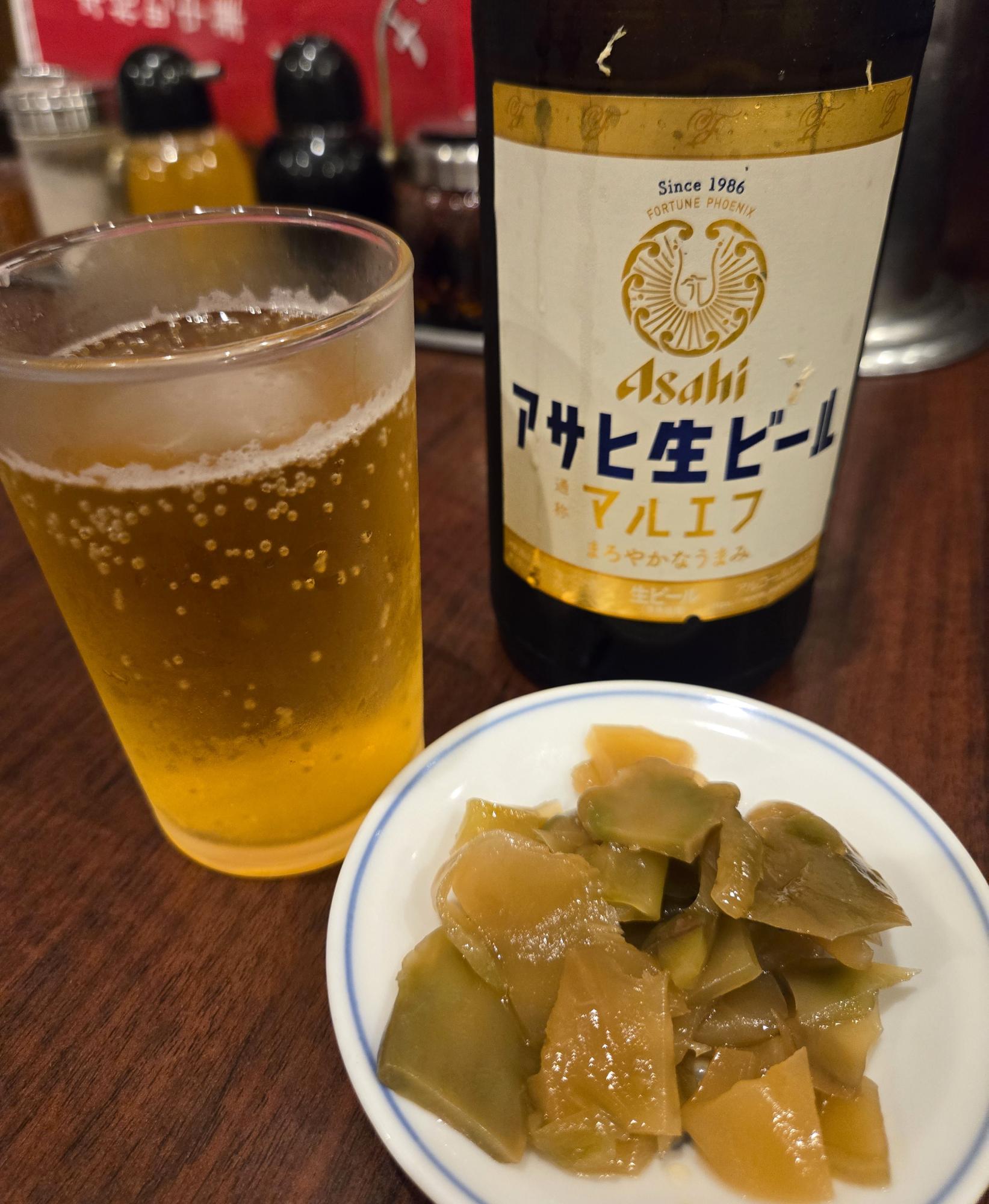 炭水化物でありながら、れっきとしたおつまみでもある。ニンニクの量と、脂の量が、たんめんよりもレベルアップしている。たんめんよりも味が濃く、ビールがぐいぐいと進む。一歩間違えば、これをおかずにライスが欲しい、ということになりかねない。