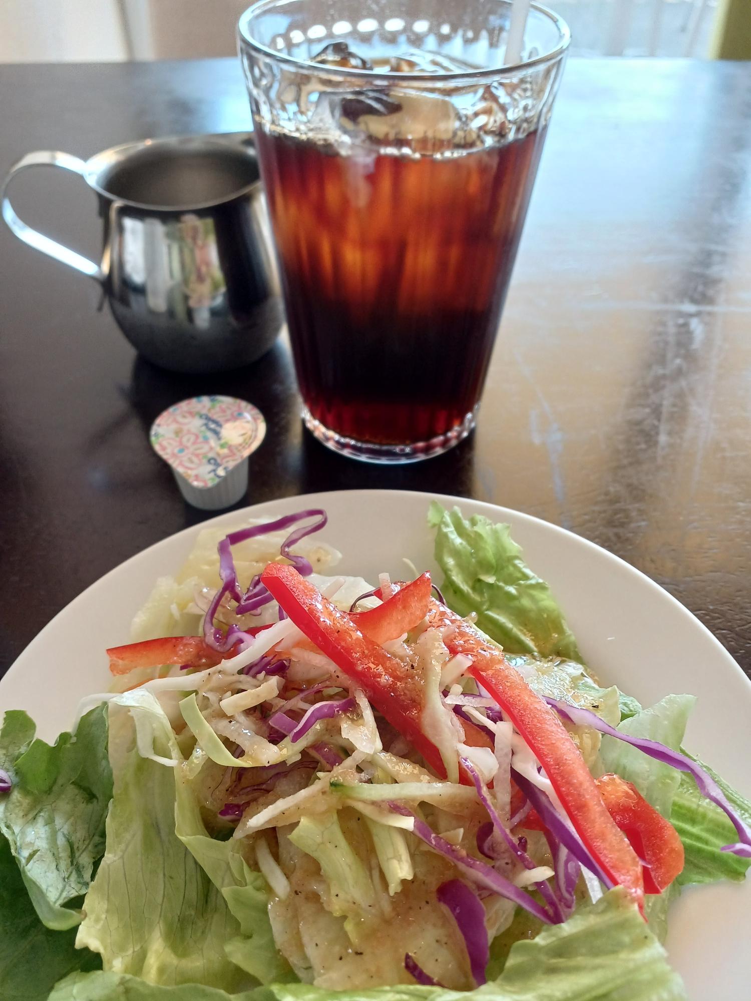 ランチメニューではサラダとドリンク付き。