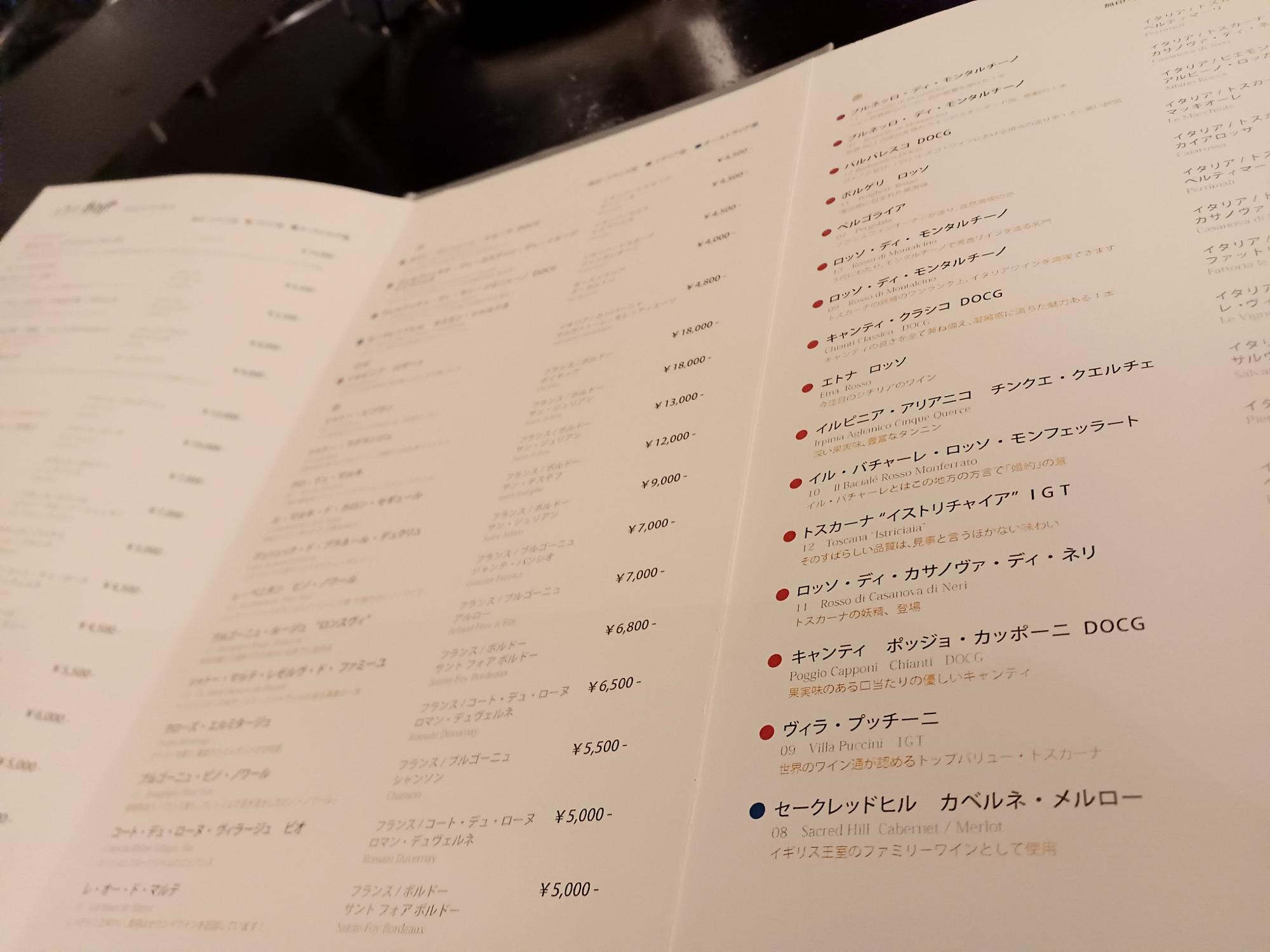 ディナータイムには、ワインリストを開いてみたりして。