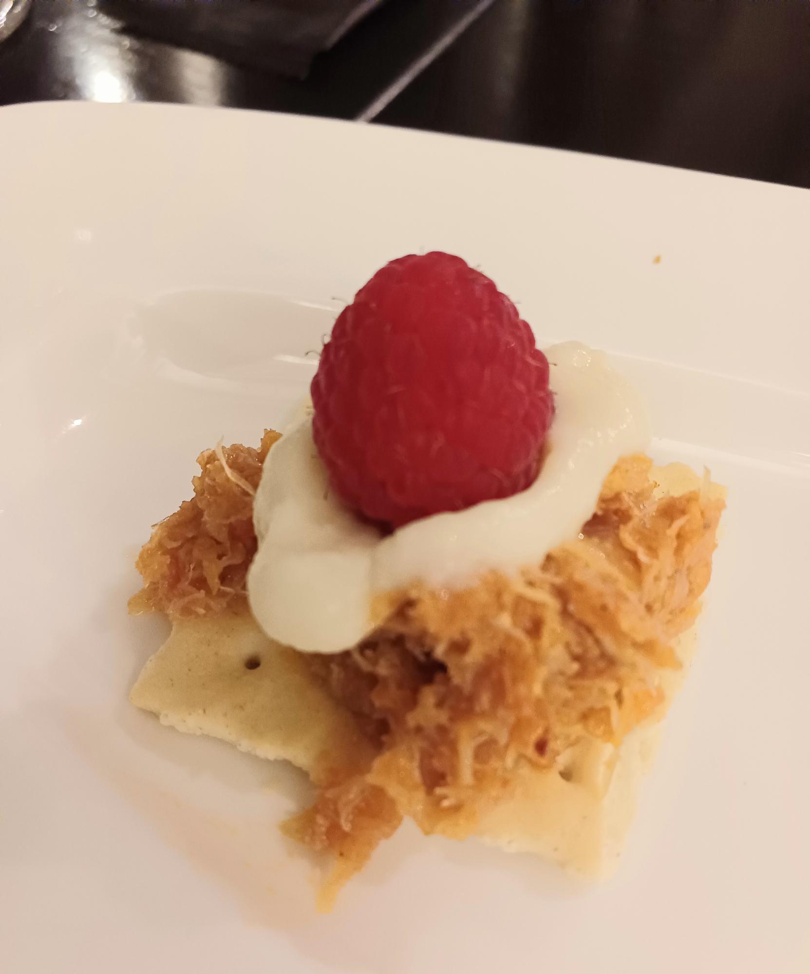 カニのカナッペにはラズベリーが乗っております!上品な味わいとはこういうことを言うのか。