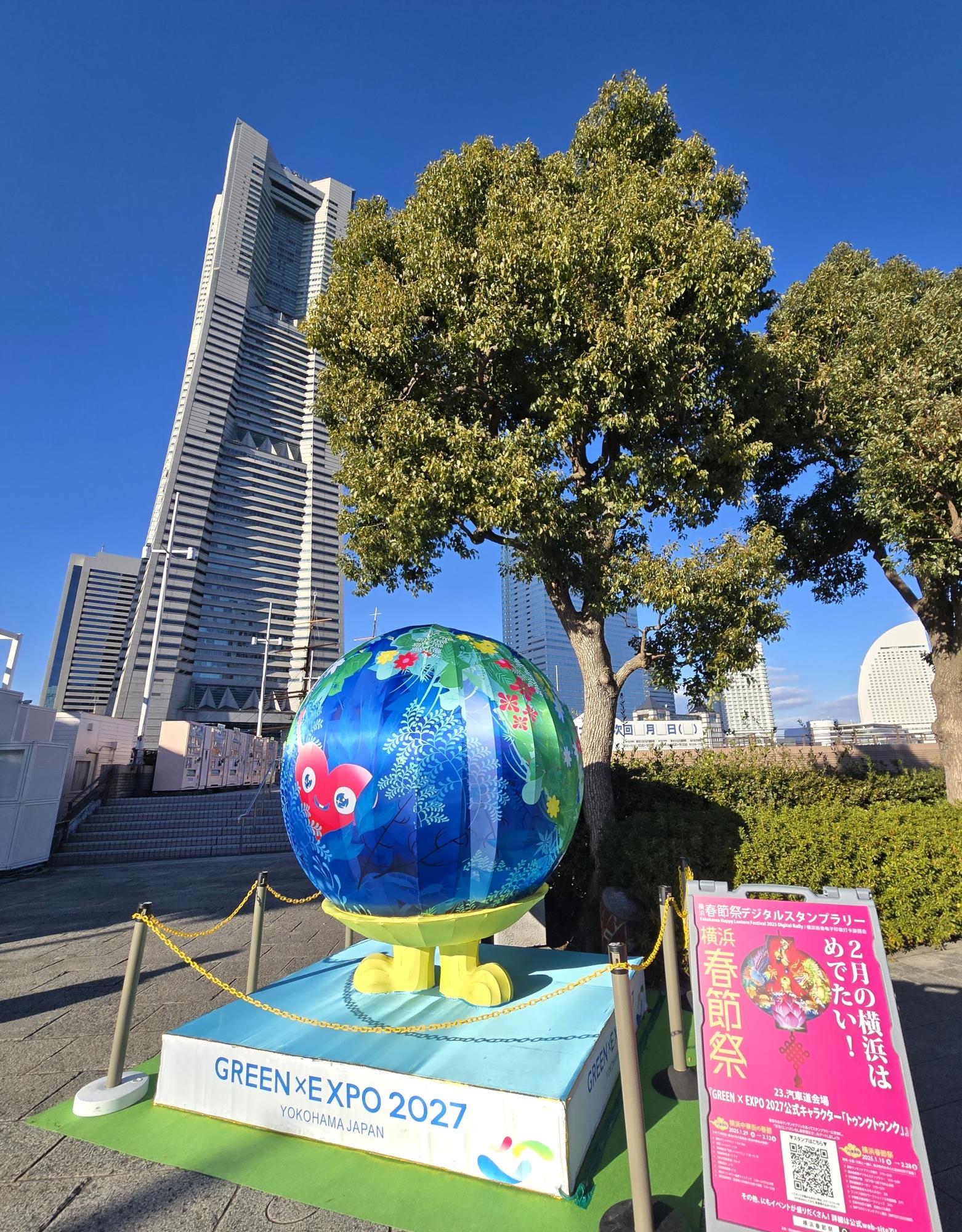 意外と目立っていたのが、汽車道入口会場にある「トゥンクトゥンク」(2027年国際園芸博覧会の公式マスコットキャラクター)。桜木町駅から汽車道へ、横断歩道を渡ったところにある。