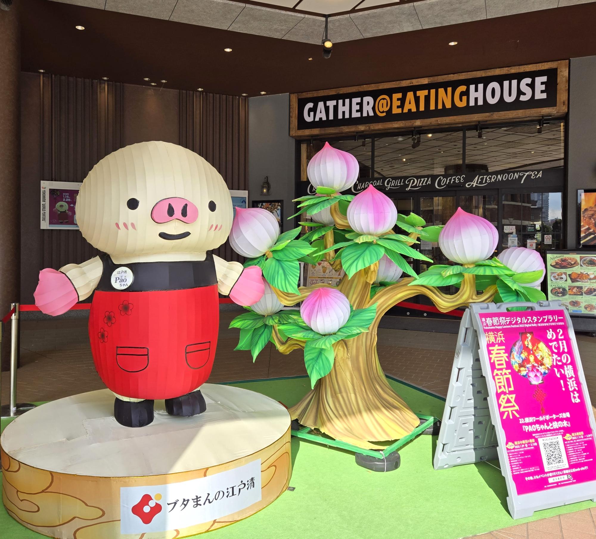 横浜ワールドポーターズでは、ブタまんの江戸清(横浜市中区)の広報部長「PAO(パオ)ちゃん」が桃の木とともに登場。