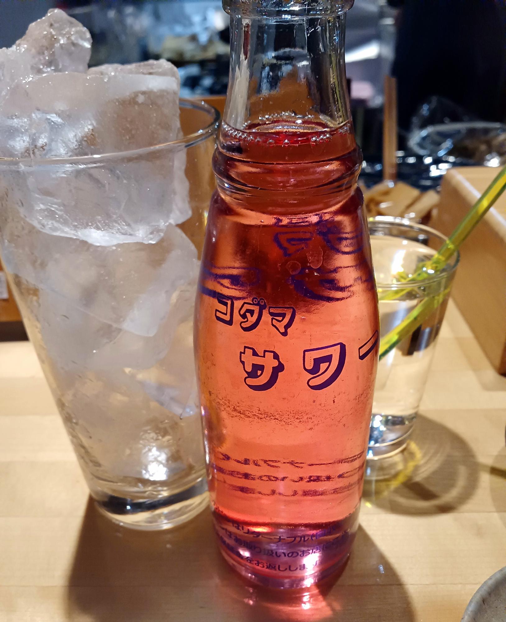 ガラスのコップに並々と注がれた焼酎は、米焼酎の「松尾」。シソ味のバイスサワーは、大田区酒場の定番と言えるが、こちらのお店では中に入れる焼酎が選べるのだ。