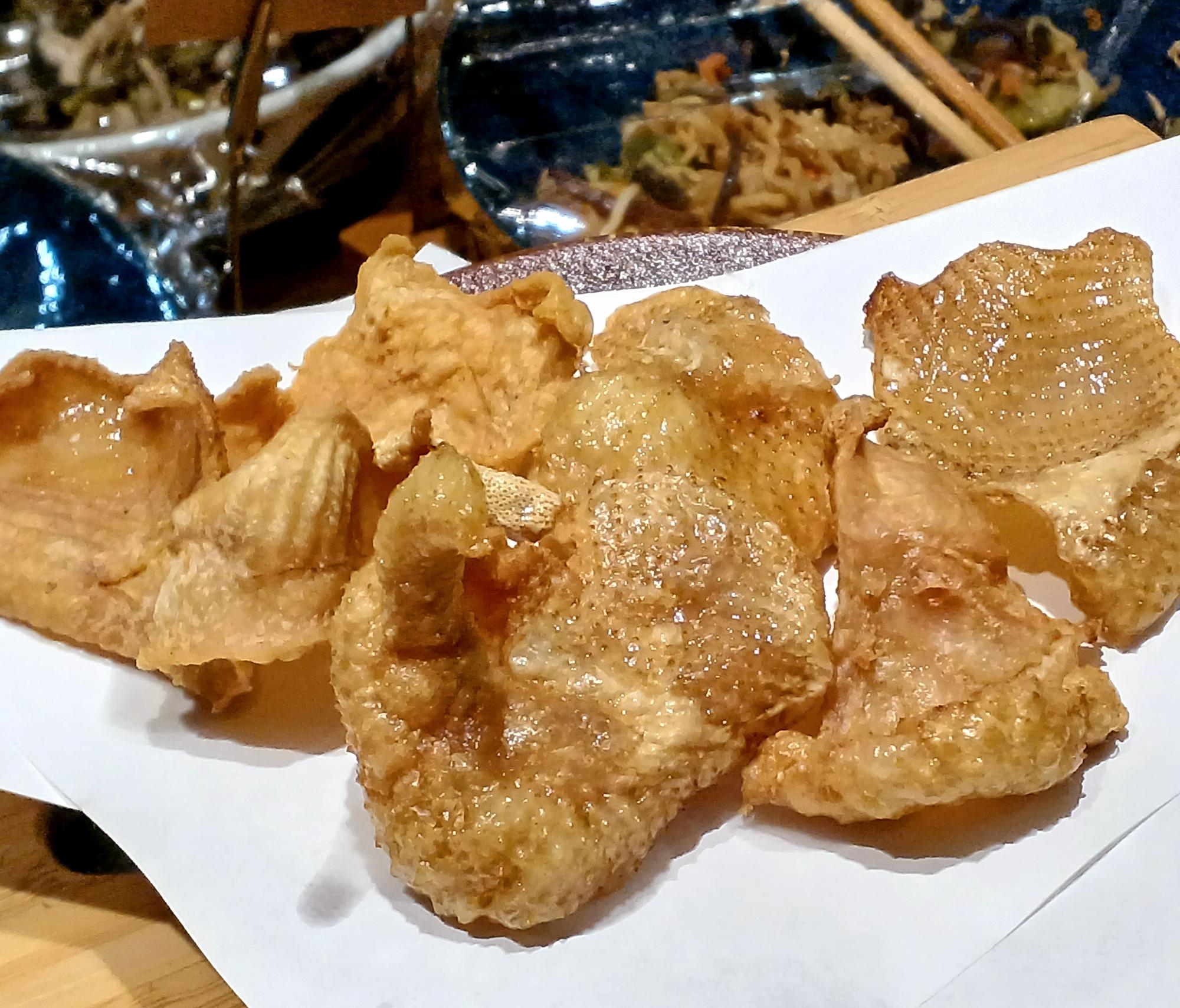 皮。こういう皮もあるのか、という発見。大きめのサイズをパリパリと、塩と油の競演を楽しむ。